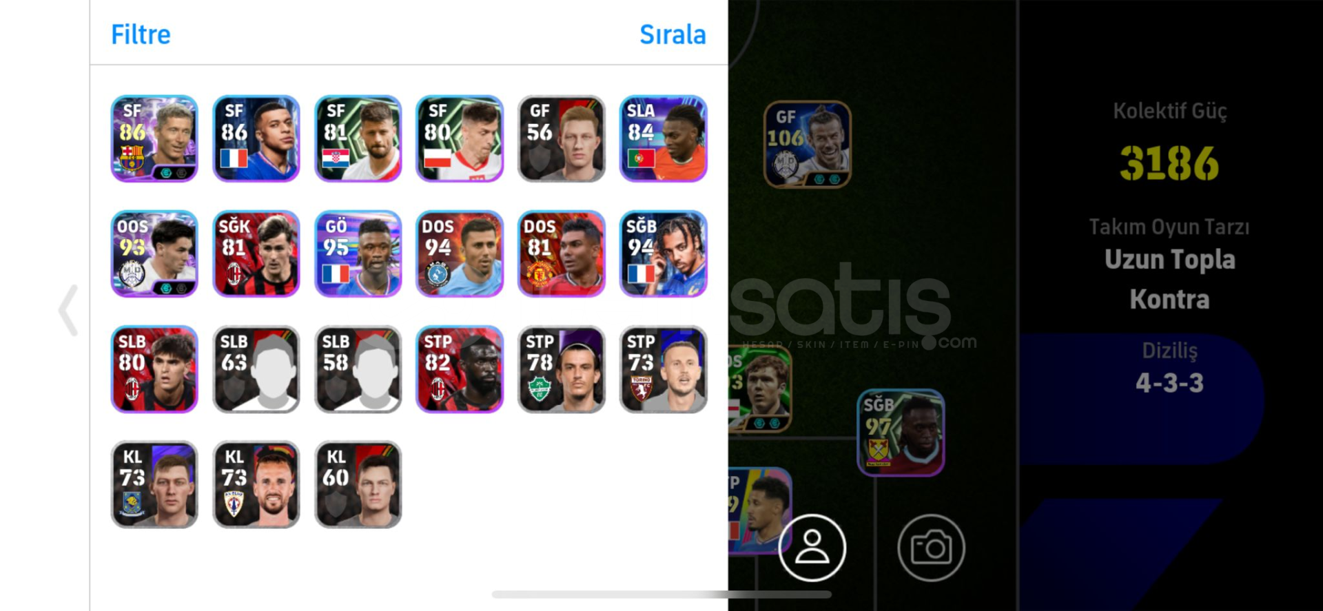 Android ve iOS her 2 taraftada -(eksi) MCsi yoktur ve Tek Bağ'dırHesaptakilerPeleBig Time CR7Big Time Gareth Bale105 Vinicius JúniorBombacı Brahim DiazFiyat teklifleriniz alınır, main hesabımdır herhangi bir sorunda ürünümün arkasındayım.