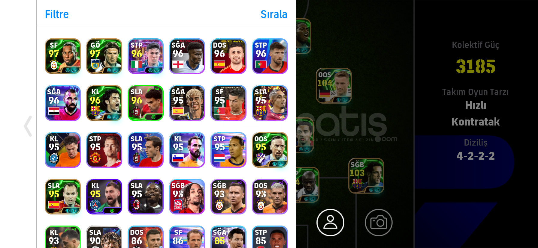 TEK BAĞ YÜZDE YÜZ GÜVENİLİR SATICI BU FİYATA EN KULLANIŞLI HESAP 106 drogba 104 berkamp bombacı 105 xavi 104 thuram 101 icardi 106 cannavaro 105 neymar 104 reus