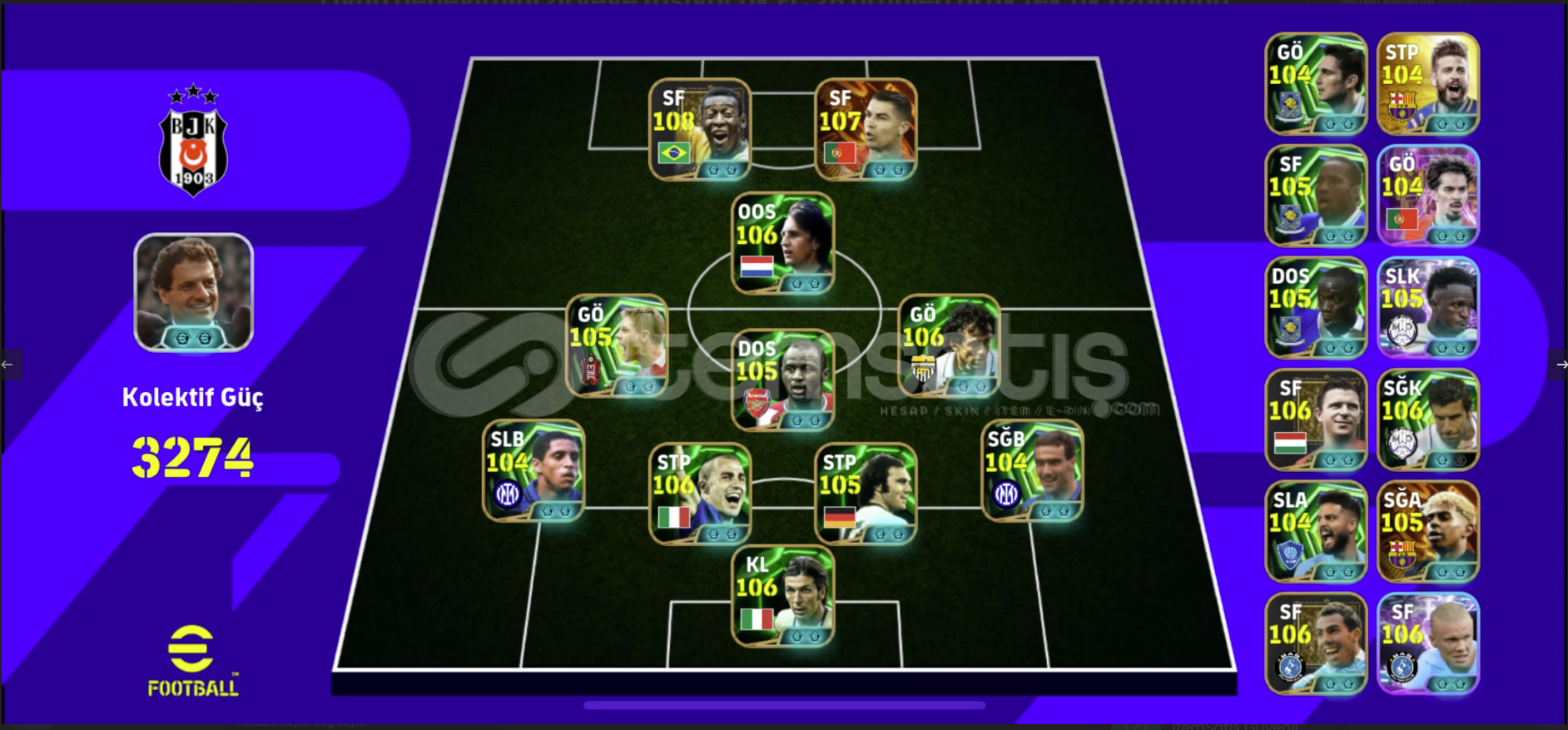 Bu fiyata kaçmaz Hesap ios/Android tek bağdır rezerve dolu 3000 mc var hesapta klasman 1 aktif drogba 106 oluyor tek bağ toplam 3 tane bombacı [mc iostadır]