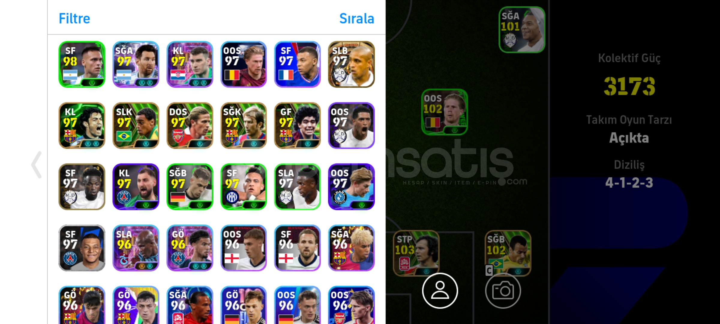 HESABIN BİLGİLERİ DEĞİŞECEKDİRTEK BAĞDIR.HESAPTA NADİR OYUNCULAR VARDI HESAPTA YOK YOK 104 VİLA 106 KAHN 102 RİVALDO ROBERTO CAROS GİBİ OYUNCULARVE NADİR OYUNCULAR BULUNUR