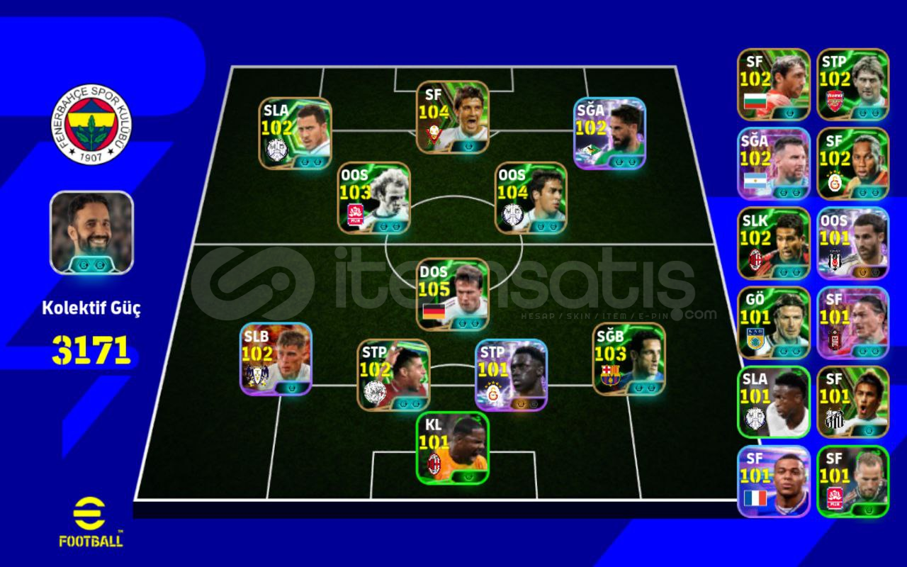 103 Honnes(bombacılı)105 lothar mathaus104 raul 101 sanchez (yeni)101 rafa silva(yeni)104 David villa102 rickard 103 beletti 102 Van de Van hesap tek bağ bu fiyata bu hesap başka yede yok kaçırma derim ilk gelen alır!!!!