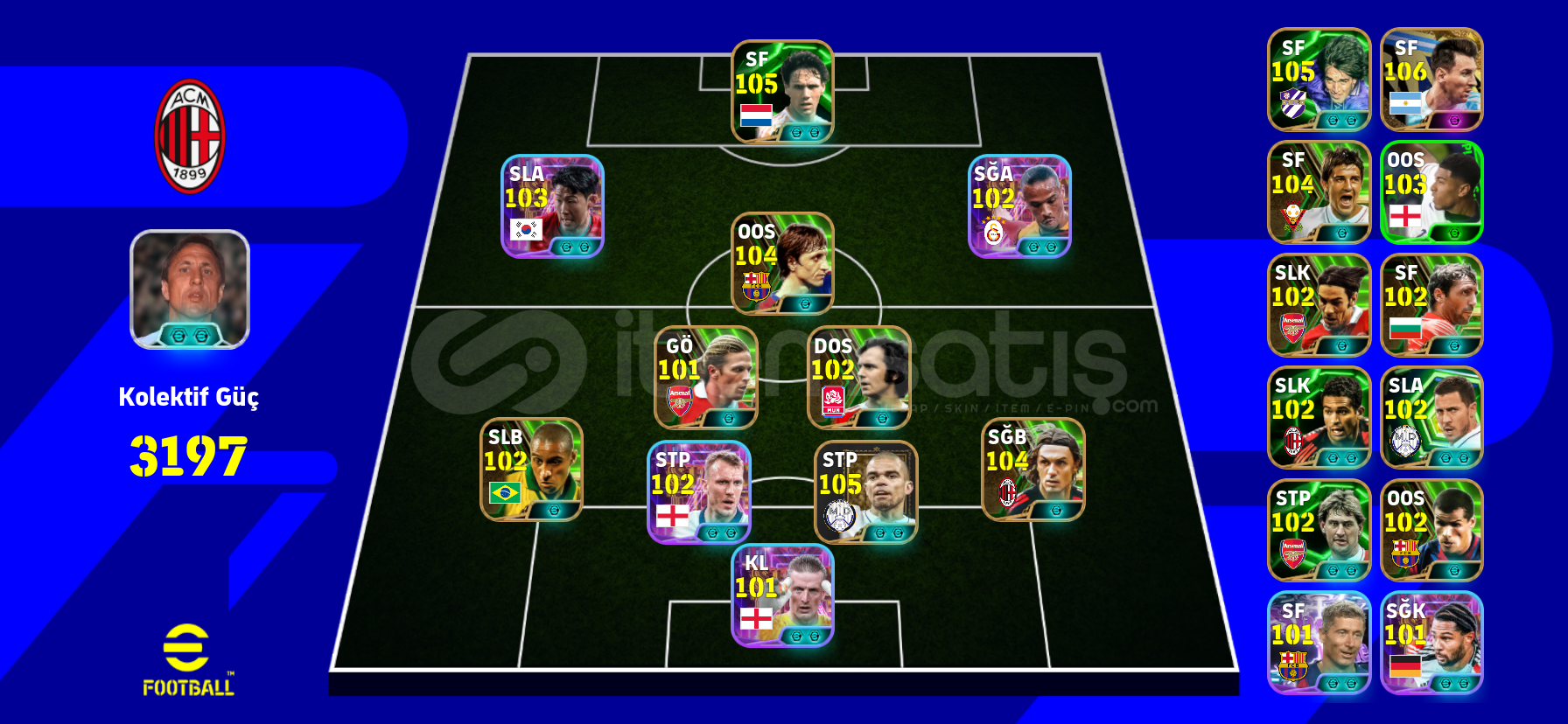 103 son bombacı102 sane bombacı106 messi105 pepe105 basten105 batusta104 maldini 104 cruff104 villa