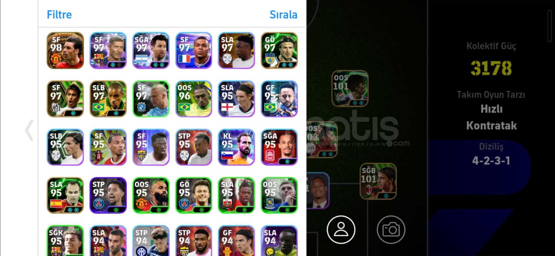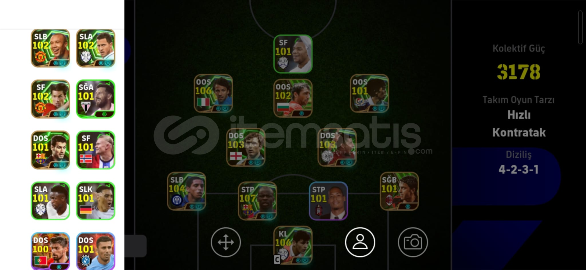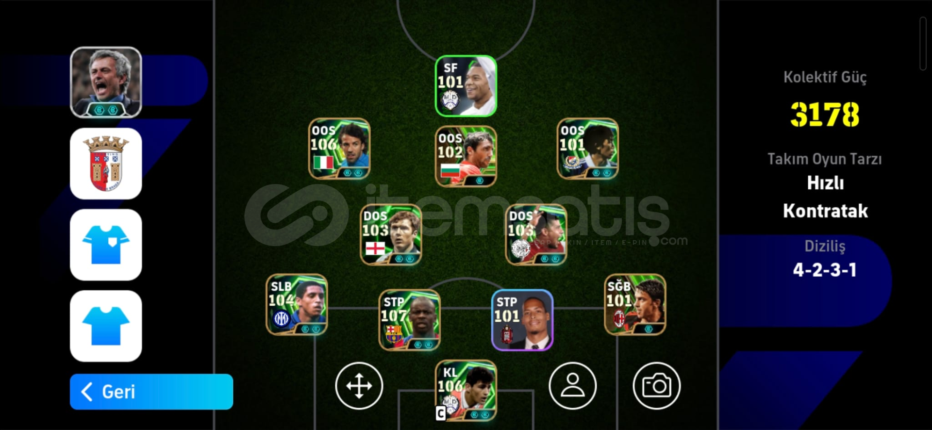 3190 KG107 BOMBACI DEL PİERO108 THURAM104 CARLOS101 BOMBACI NAKAMURA106 CASİLLASTEK BAĞ11 MİLYON GP VE 900 MC