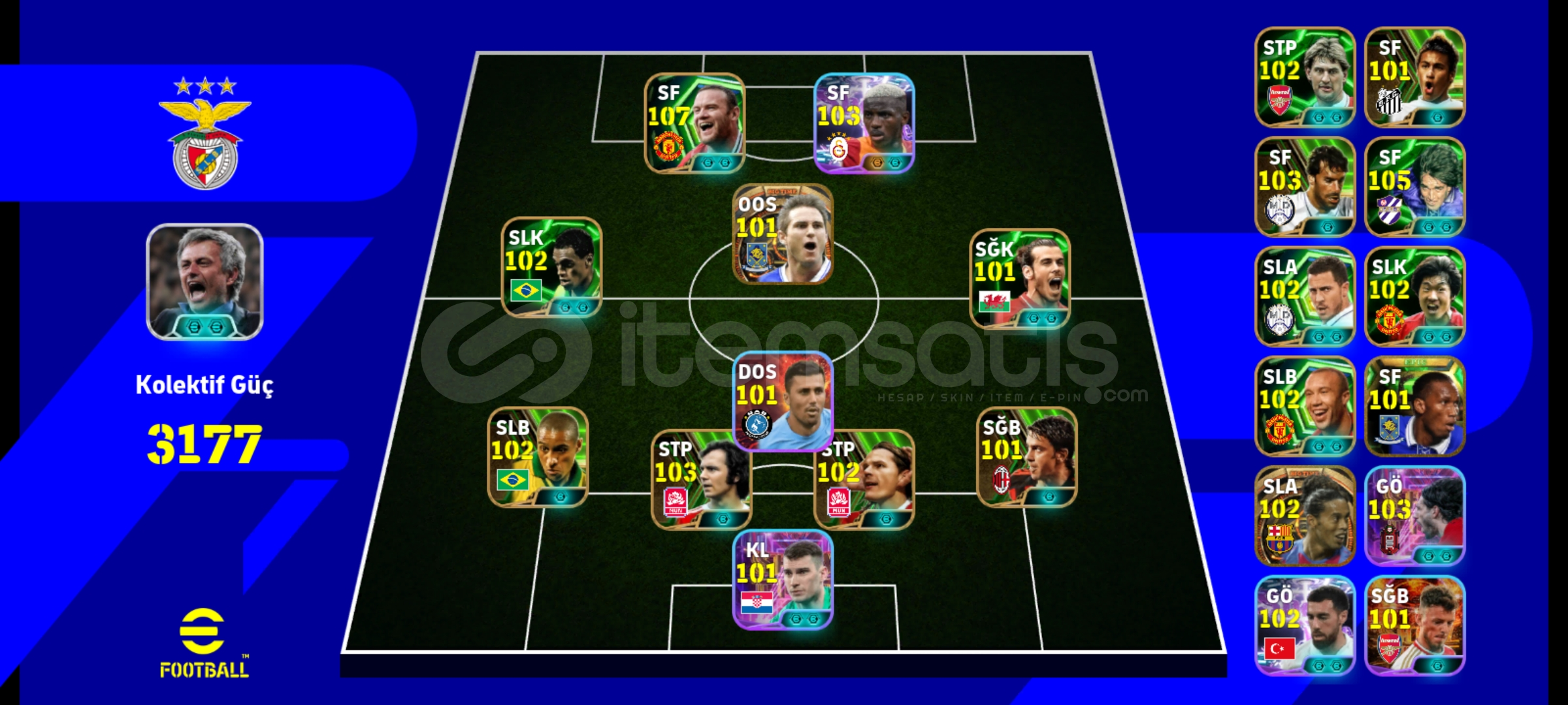 107 rooney 103 osimhen103 bombacı szobazslai102 Ronaldinho 101 lampardTEK BAĞ(KONAMİ İD)TD JOSE MOURİNHO(İNTER) GASPERİNİ VE RUBEN AMORİM