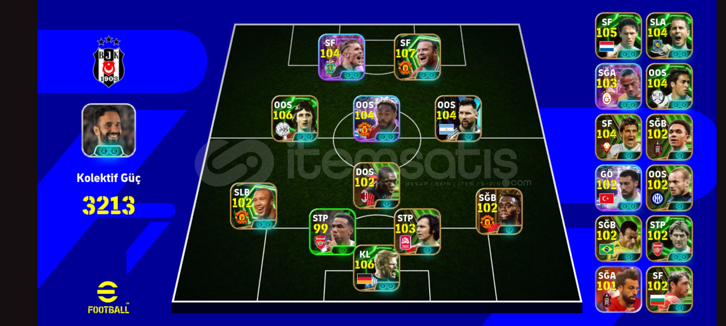 3213 KGTEK BAĞ HESAPTIR.HESAPTA ;107 ROONEY106 CRYUFF105 EDEN HAZARD104 GYÖKERES105 VAN BASTEN106 OLİVER KHANBOMBACI 103 LEROY SANEBOMBACI 105 MATHEUS CUNHAVE DAHA FAZLASI BU HESAPTABEYLER BU HESAP KAÇMAZ TAM FIRSAT HESABI YENİ KARTLARI DENEME ŞANSI ÇITIR REZERVLİ MÜKEMMEL HESAP.