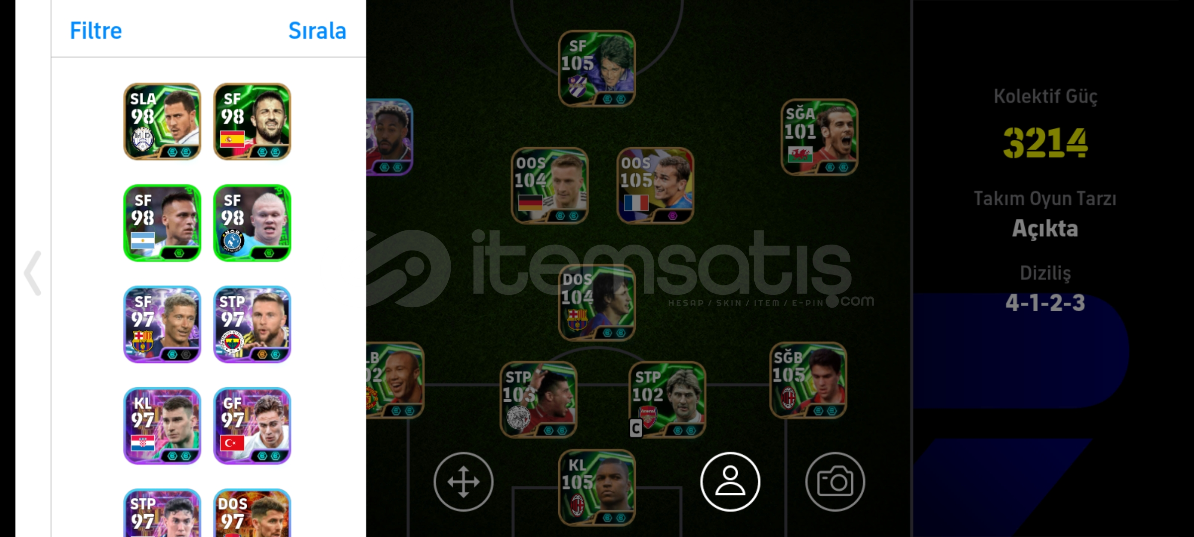 106 Messi 105 Griezmann 105 FIFA ve birsürü epic bulunmakta