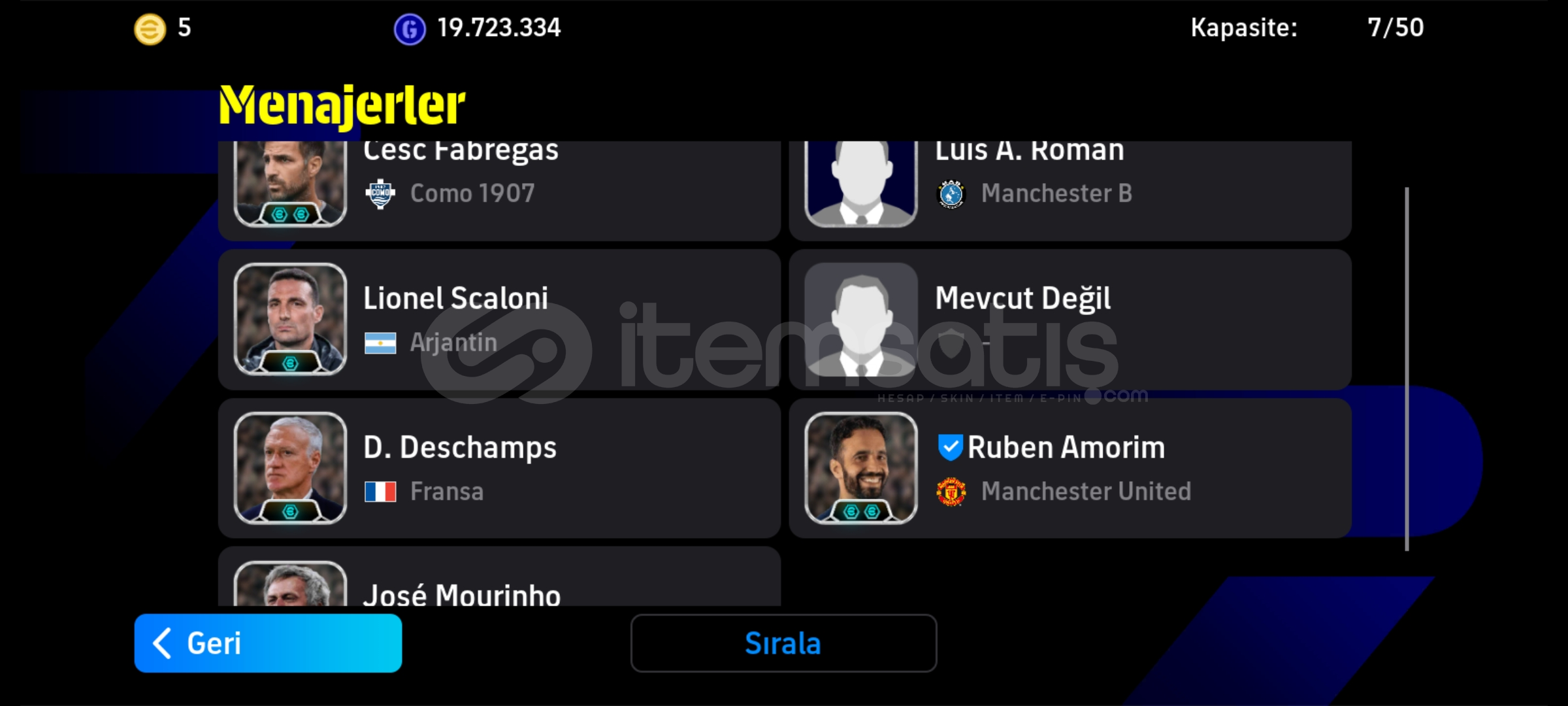 Hesapta;6 Teknik direktör2 bombacı (Cunha ve bale)106 Messi 105 Griezmann 105 FIFA ve birsürü epic bulunmaktaEKSİ MC YOKTUR!