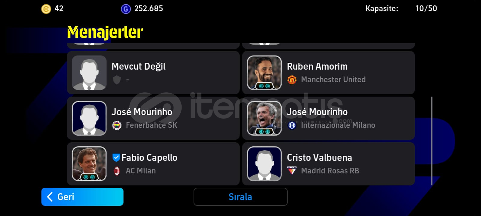 -MC yoktur / tek bağ 3 DROGBA VARDIR ÇOK SAYİDA MENAJER VARDIR ORTA KAFA ÇOK RAHAT OYNANABİLİR BOMBACISI VARDIR KAFACI OSHIMEN DROGBA VARDIR PAZARLIK OLUR BİLGİ İÇİN DM