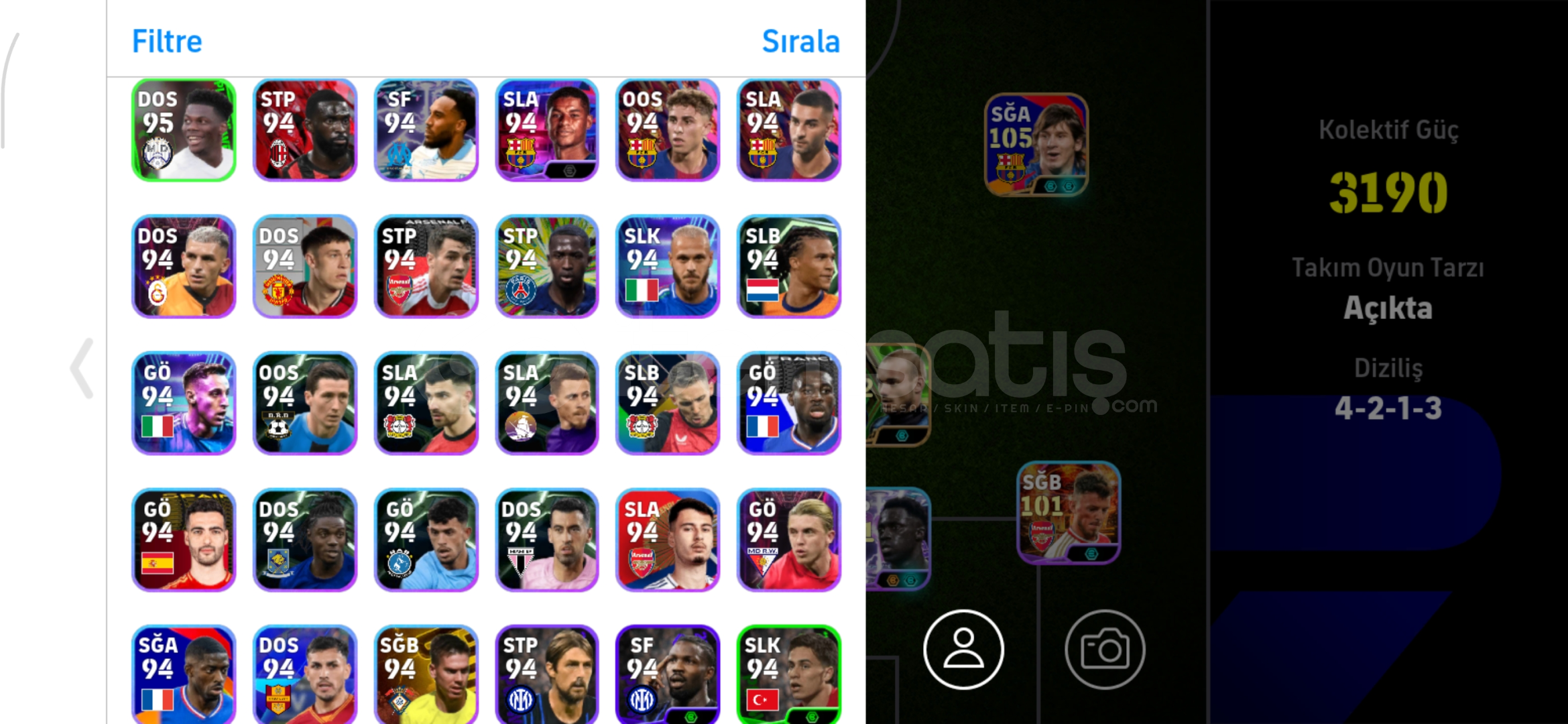 Hesapta 240a yakın özel kart bulunuyor ligim oynayan arkadaşlar için özel kadrolar kurup oynayabilir hesap emek hesaptır hesabin içinde de 600 mc bulunuyor bu kadar oyunculu böyle bir hesap bulmak kolay değil şimdiden alana hayırlı uğurlu olsun hesap cift bağdır ama alındıktan sonra herhangibir işlem yapılmaz öyle bir işlem olduğunuda tüm sorumluluk bana aittir