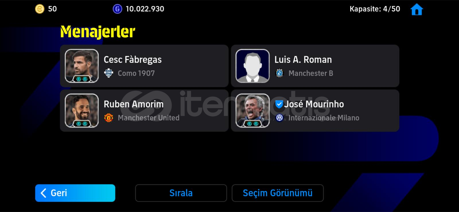 3 adet teknik direktör Ruben Amorim, Jose Mourinho (125TL) Cesc Fabregas