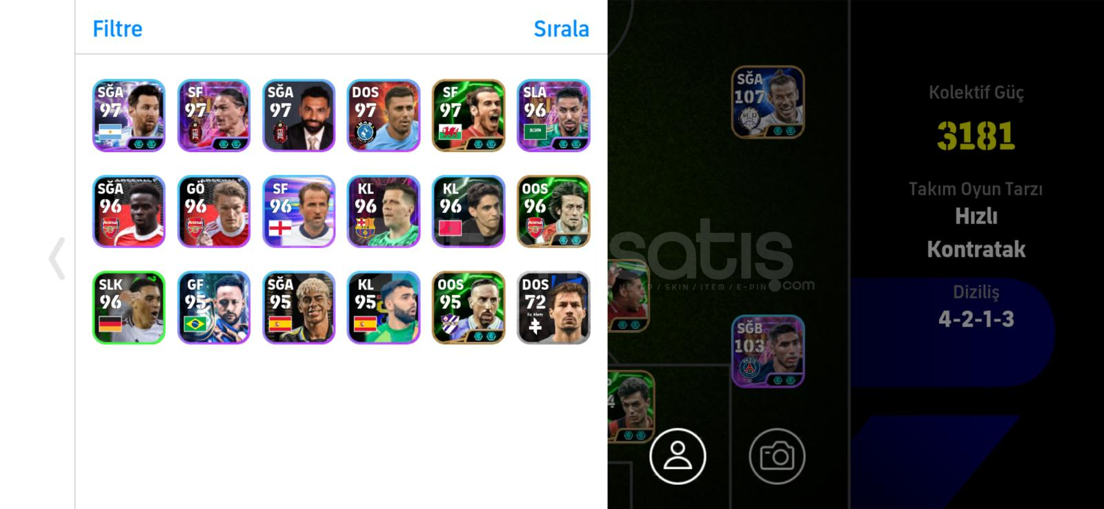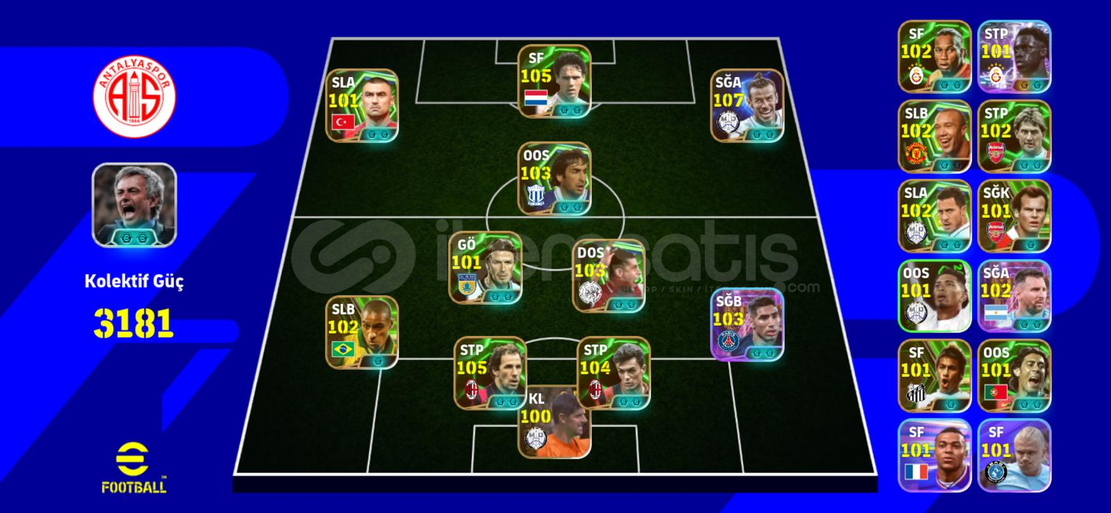 Pazarlık olurBombacı olarak Burak Yılmaz 101 + Gareth Bale 101Gareth Bale 107Van Basten 105Dehşet Defans hattı 105 104 102 103Sol Sağ açık BOMBACIKlasman 4dür Klasman 3 görmüştürTek bağ3 adet teknik direktör Ruben Amorim, Jose Mourinho (125TL) Cesc Fabregas10 MİLYON GP 50mc3180 KG
