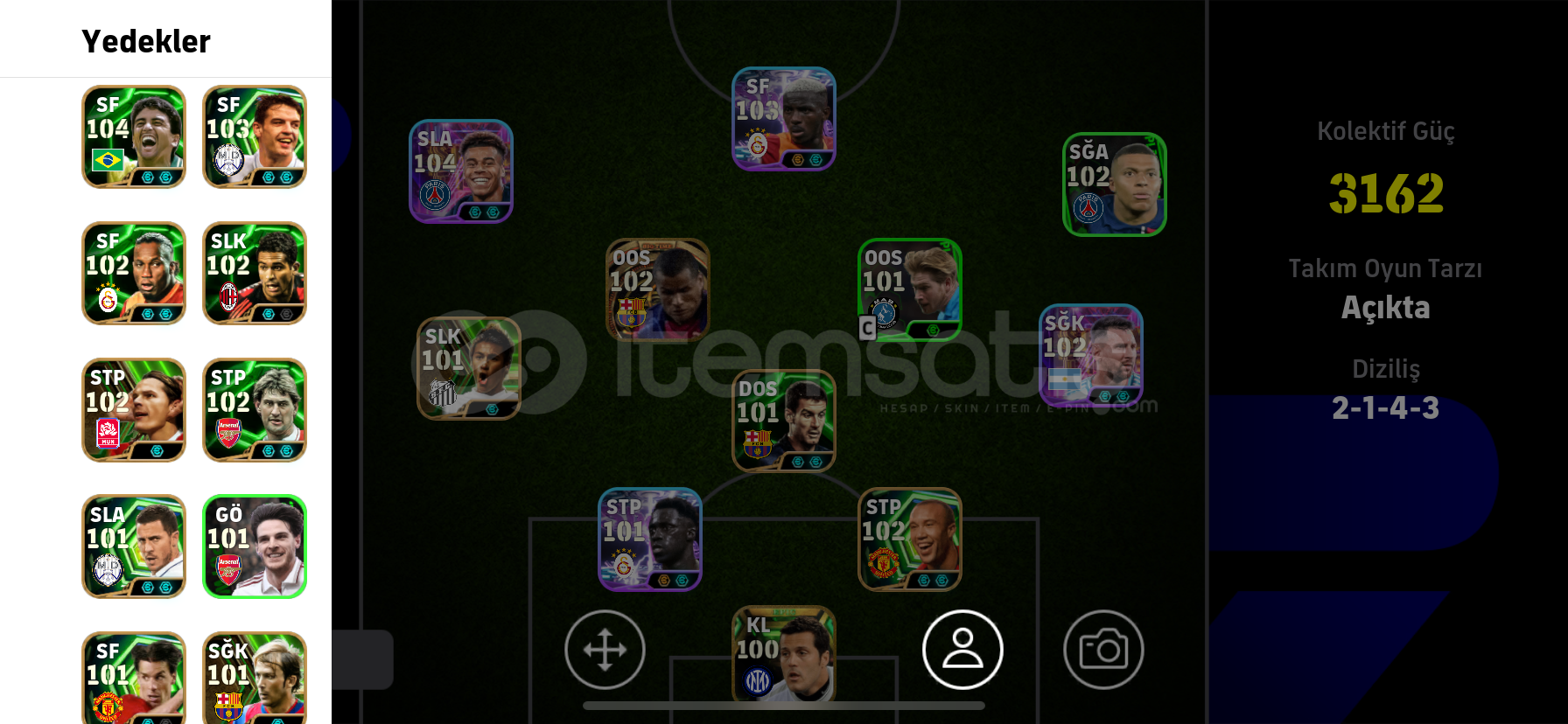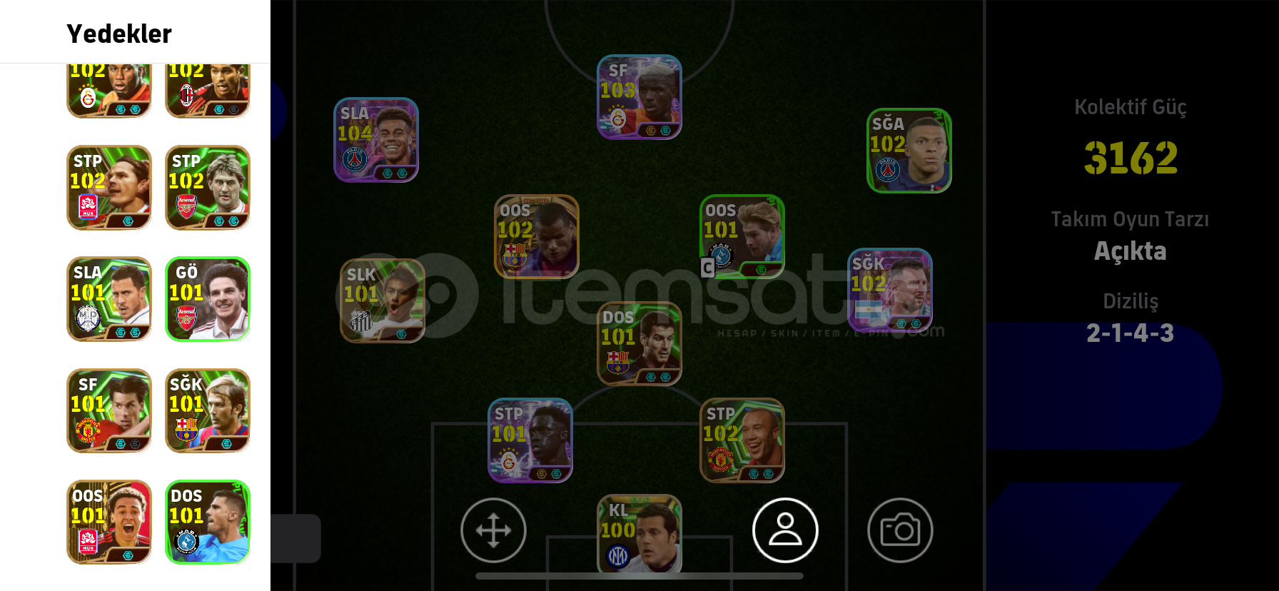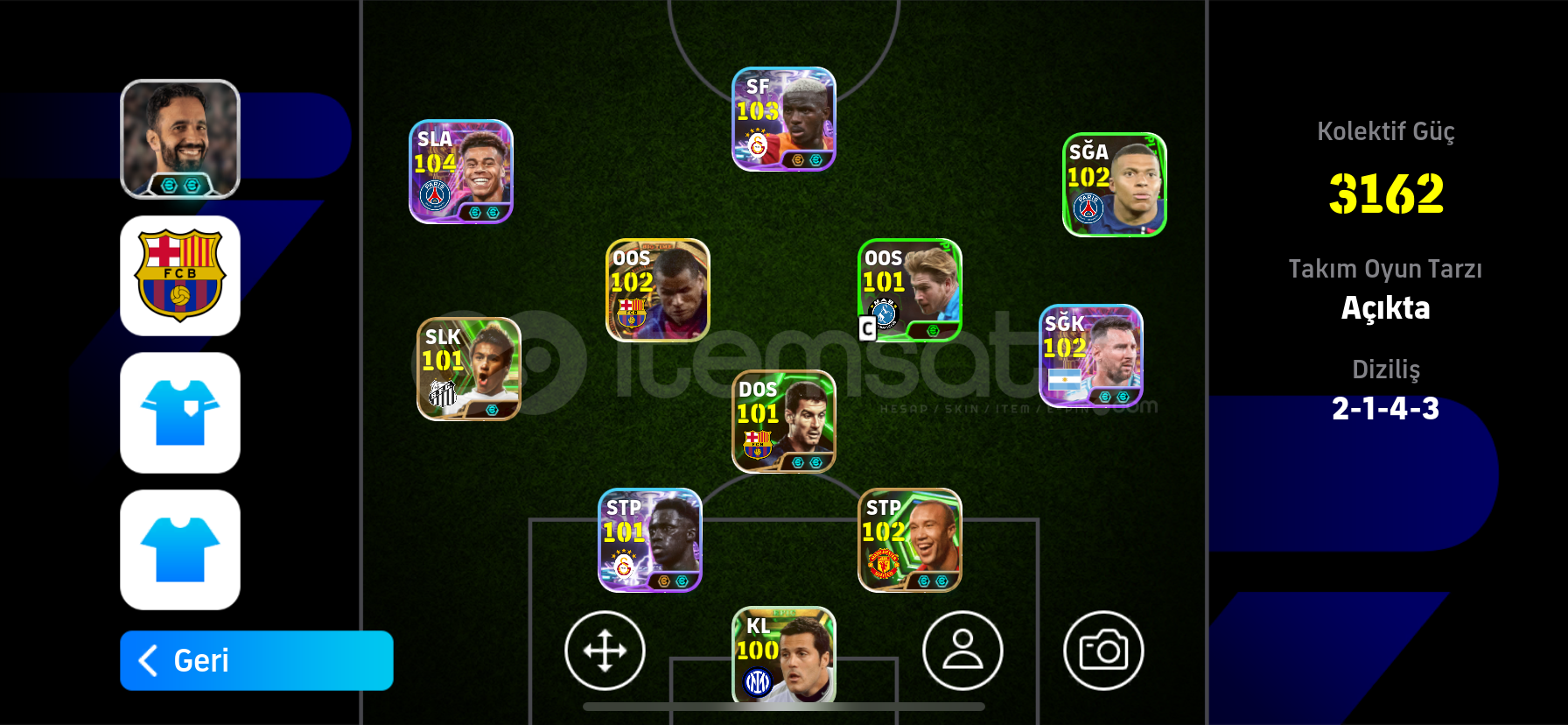 ÖNCELİKLE SELAMALEYKÜM ARKADAŞLARHESABIN 3162 KOLEKTİF GÜCÜ BULUNMAKTADIRHESAPTA -DESİRE DOUE- -RİVALDO- -JULİO CESAR- -DROGBA -VİCTOR OSİMHEN VE BOMBACI BURAK YILMAZ VB ÇOK NADİR DEĞERLİ GÜZEL OYUNCULAR VARDIRKONAMİ İD YE BAĞLIDIR HEMEN TESLİM EDİLİR
