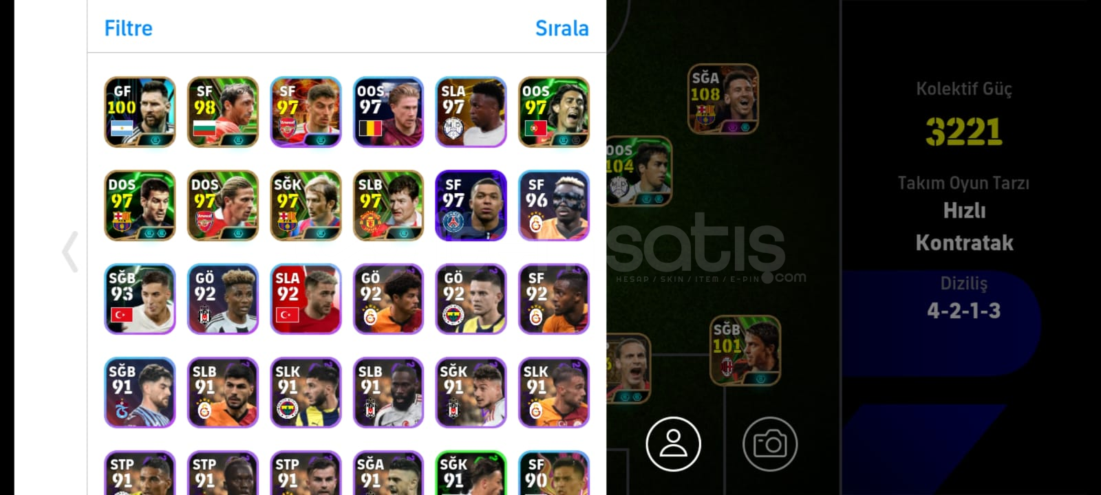 108 MESSİ BOMBACI106 CARNAVARO106 FERNİDANT106 FORLAN103 BALE104 RAUL107 OSİMHEN105 SUAREZ104 MİTOMU102 SANE BOMBACI