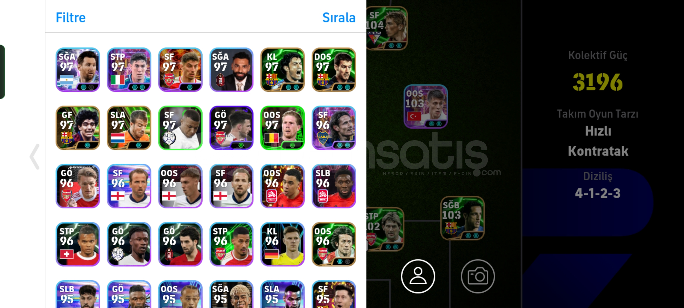 MAX 3198 107 Neymar 104 David villa 104 Torres 105 platini 104 neuer 103 arda Güler tek bağdır ve ekşi MC yoktur