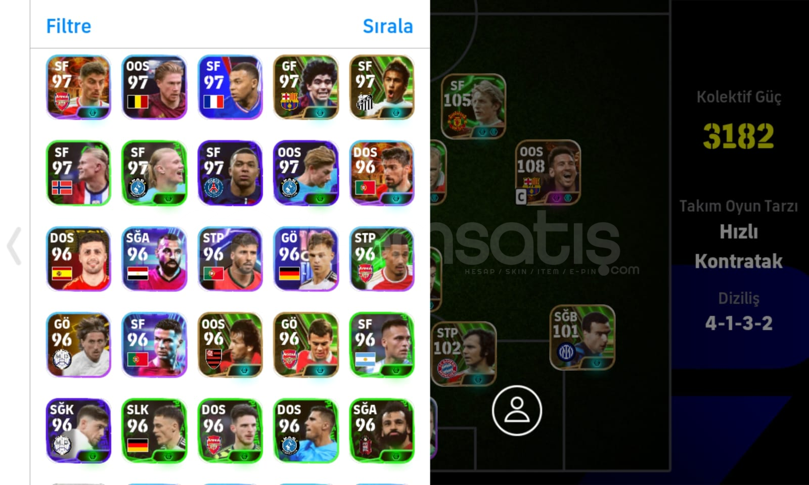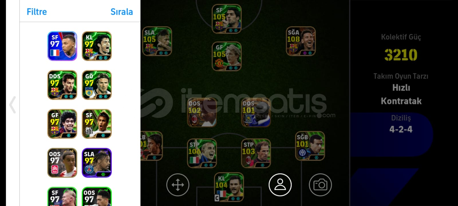 108 Messi105 Neymar105 Suarez105 Denis law104 Dennis Bergkamp104 Loris106 CannavaroBigtime makalele ve rijkardToplam 25 e yakın epicHESABIN UYGUN FİYATLI OLMA SEBEBİ ÖLÜ BAĞ OLMASI DIR!!