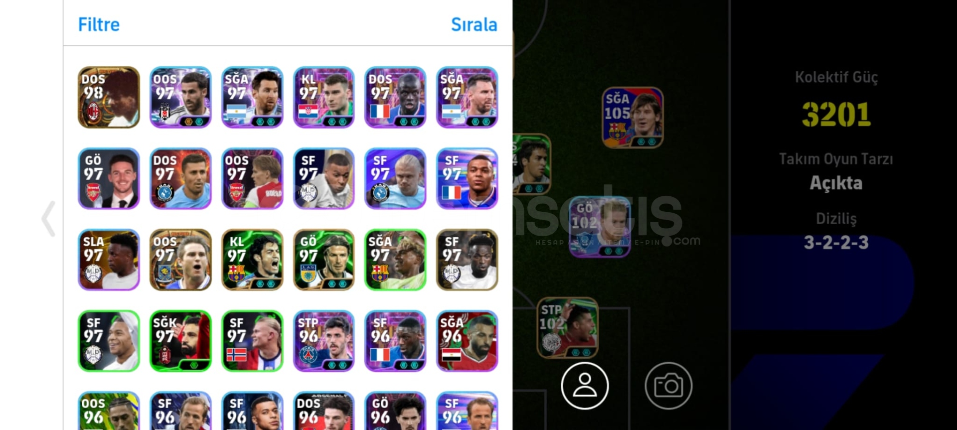 3200 Üstü hesapHesap ta 105 Messi bulunurMükemmel HesapTeklifler Açık
