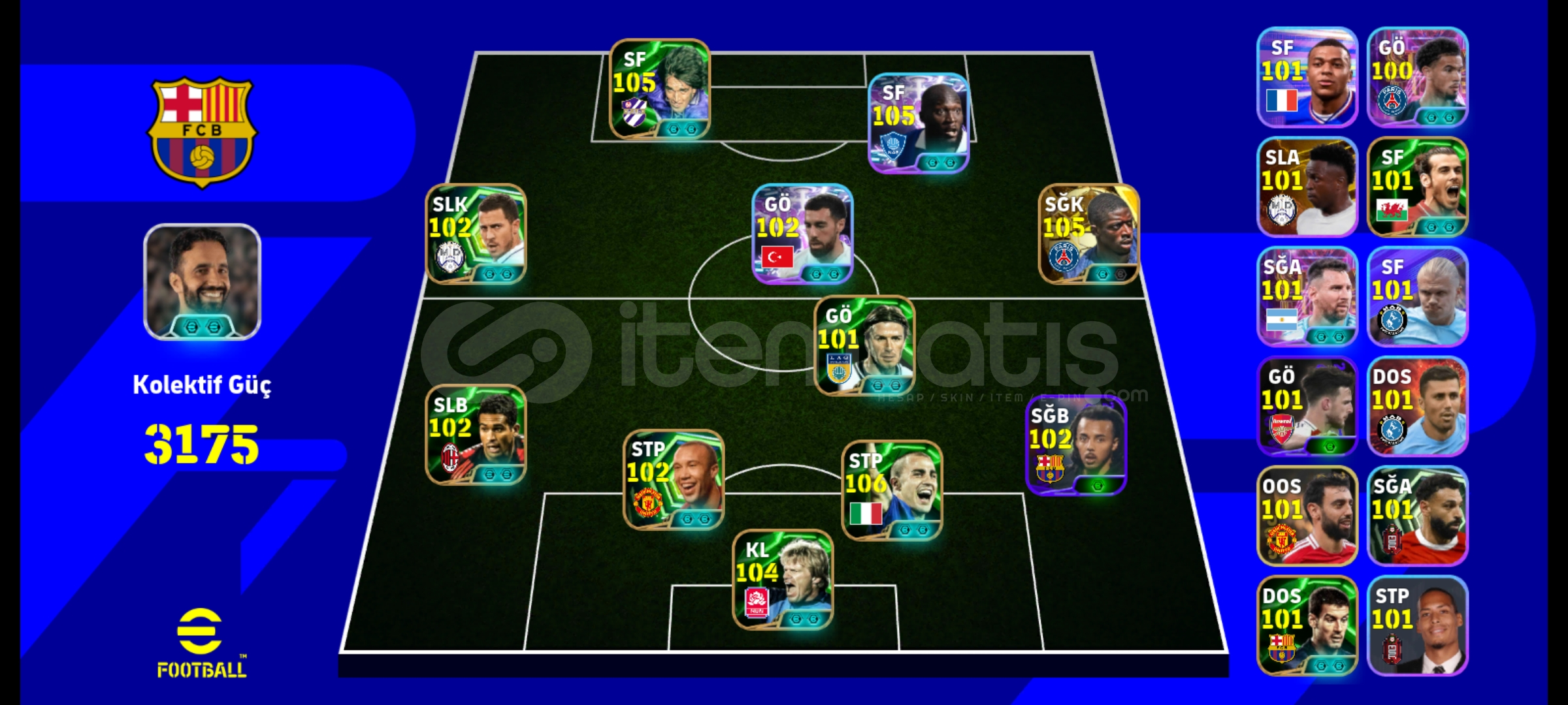 106 Dembele105 Batistuta105 Romelu Lukaku104 Oliver khan106 CanavaroBOL REZERVli HESAP170 MC