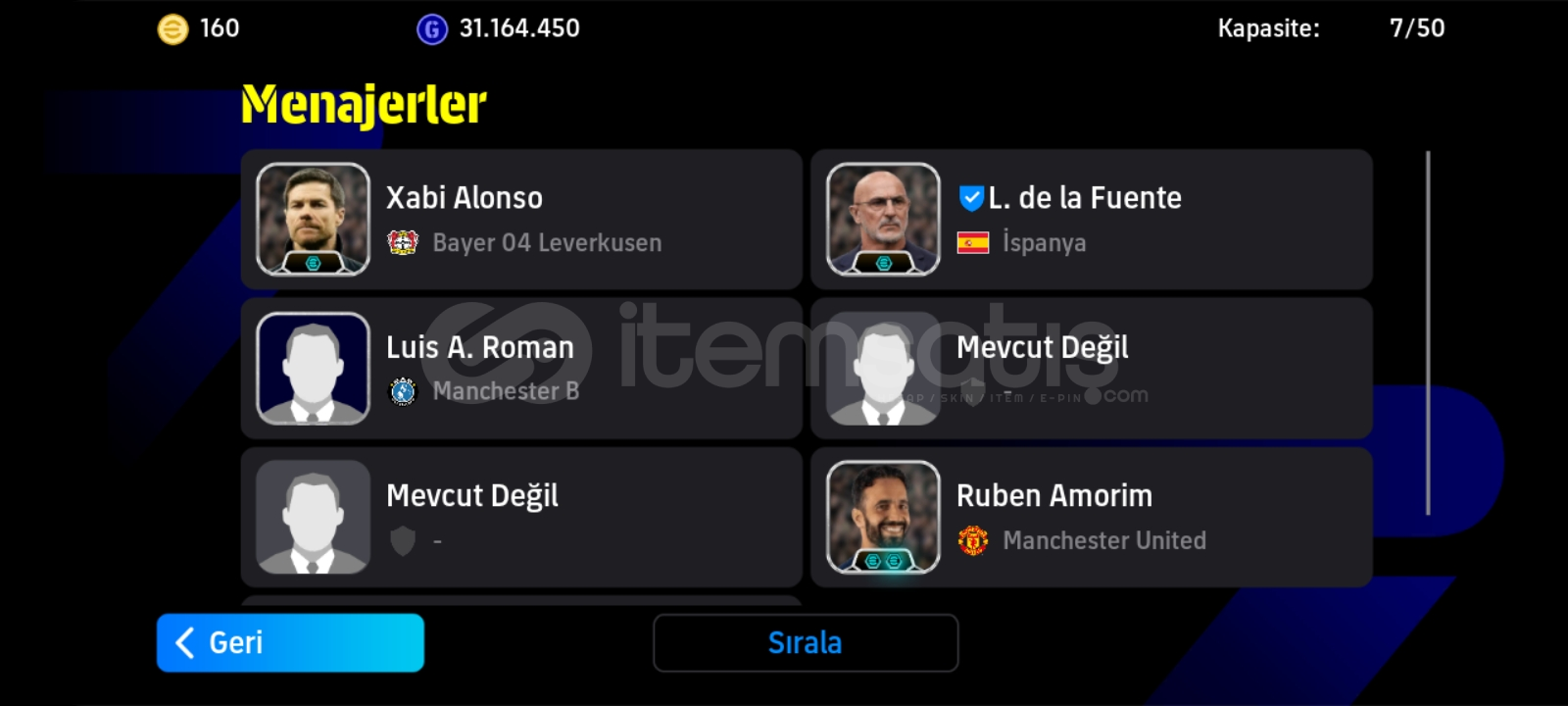 Efotball satılık hesappp dolu dolu hesap 1 bombacı 4 tane teknikdrektör ne ararsan var 2.5 yıllık hesap güvenilir teslimat HESAPTAKİ BAĞ SAYISI 2 İKEN 1 E DÜŞÜRÜLMÜŞTÜR ANCAK OYUNDA TİK YANIYOR AMA 1 BAĞ VAR Pazarlık payı vardır