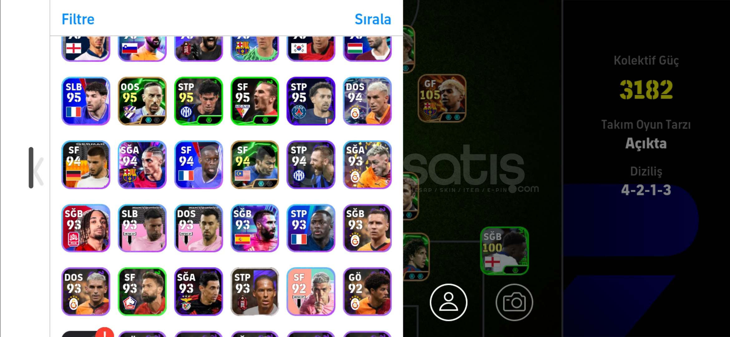 🎮 Satılık eFootball 2025 hesabıTakım gücü yüksek, meta oyuncularla dolu, kurulmuş hazır kadro! Hesap sorunsuzdur, mail + şifre teslim edilir. Alıcıya tüm bilgiler eksiksiz verilecektir.⭐ ÖNE ÇIKANLAR:Kolektif Güç: 3182Tamamen geliştirilmiş 105 + rating oyuncularMeta defans – orta saha – hücum üçlü yapısıBirçok ikonik ve epik oyuncuKa...