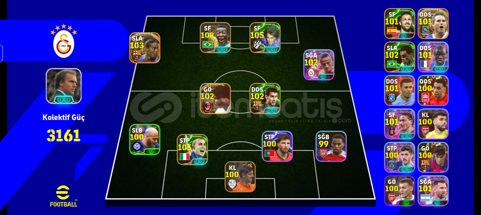 Hesap 3161 kolektif gücüne sahip 1 tane bombacı ve güzel kartlar bulunmakta 108 Pele vs.