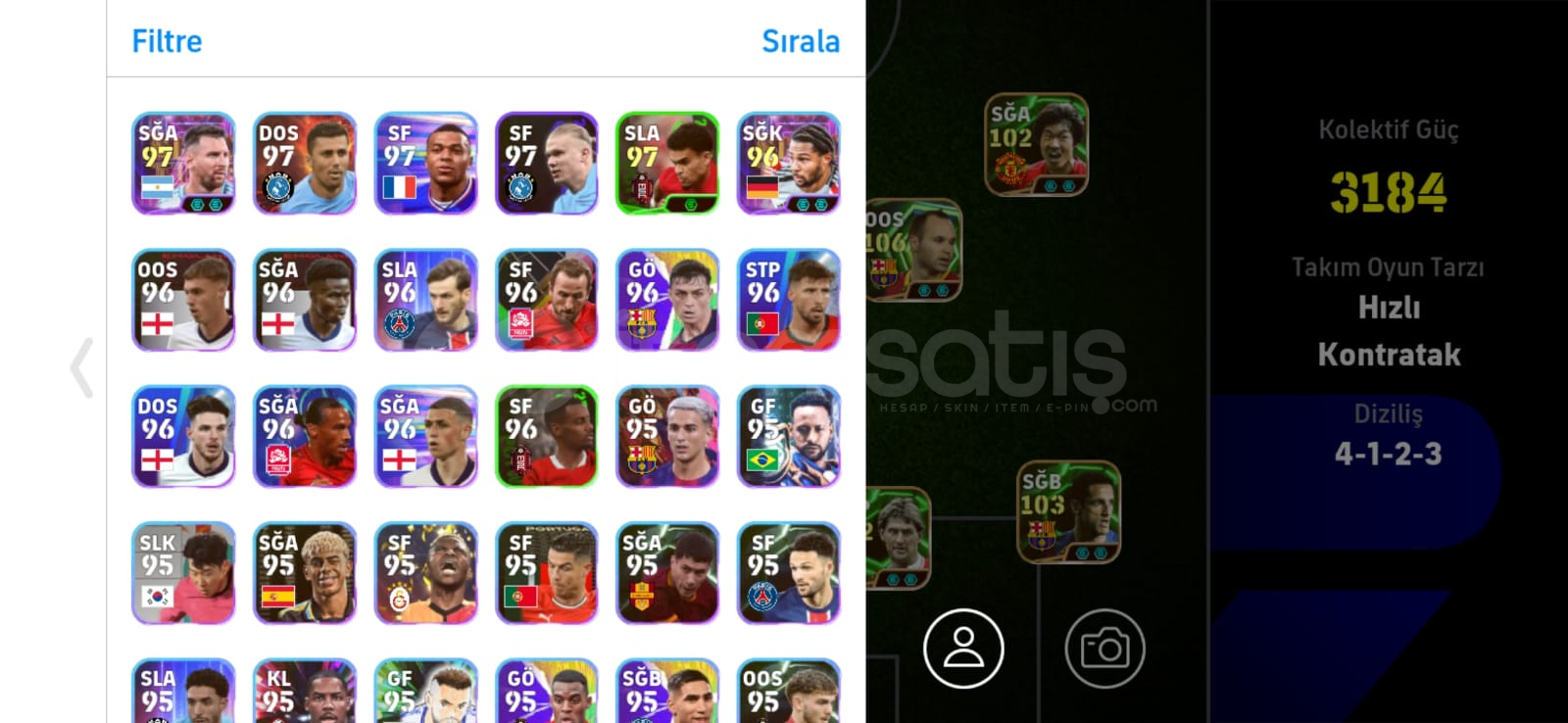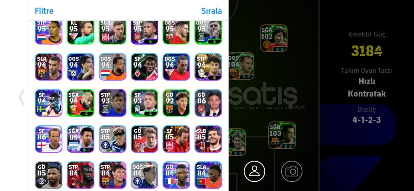 Efootball 3185 KG Bombacılı Efsane Hesap