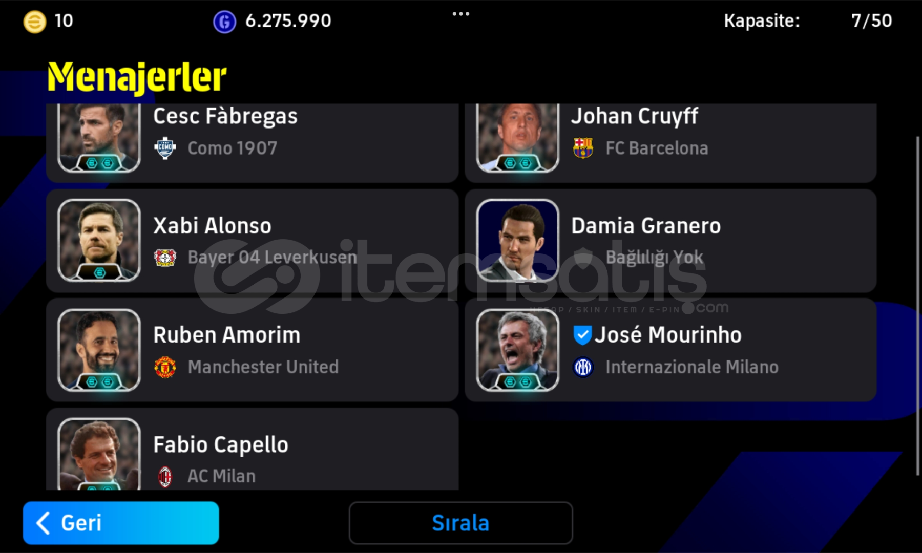 ⚽ Efootball Efsane Kadro 3188 Güç – Satılık!!!