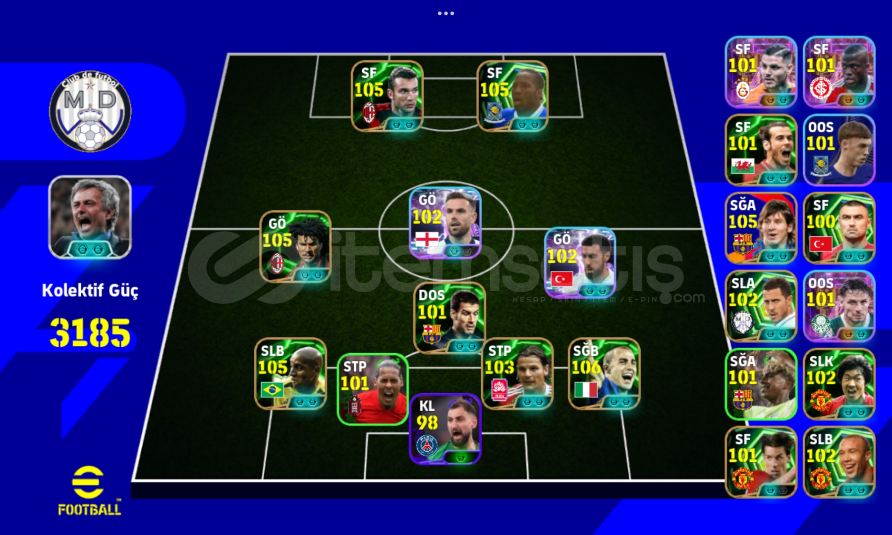 ⚽ Efootball Efsane Kadro 3188 Güç – Satılıktir