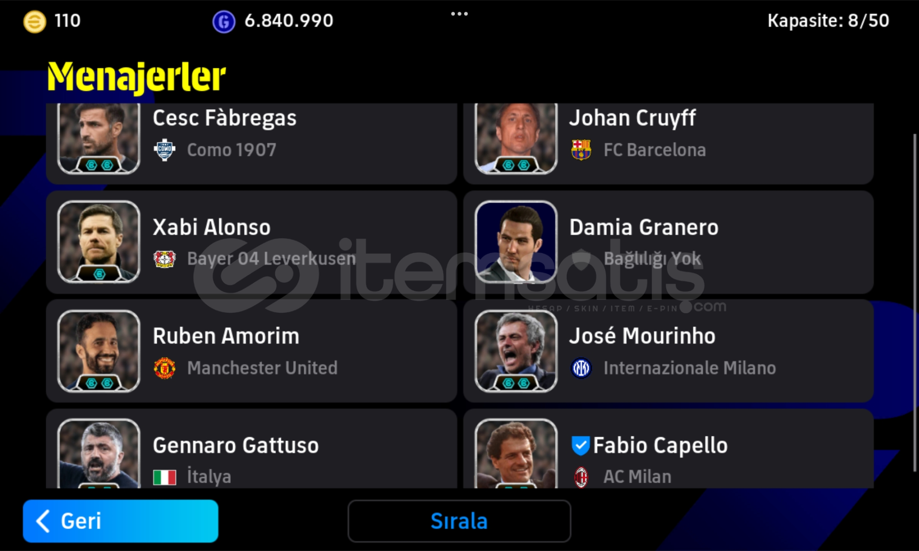 ⚽ Efootball Efsane Kadro 3195 Güç – Satılık!!!