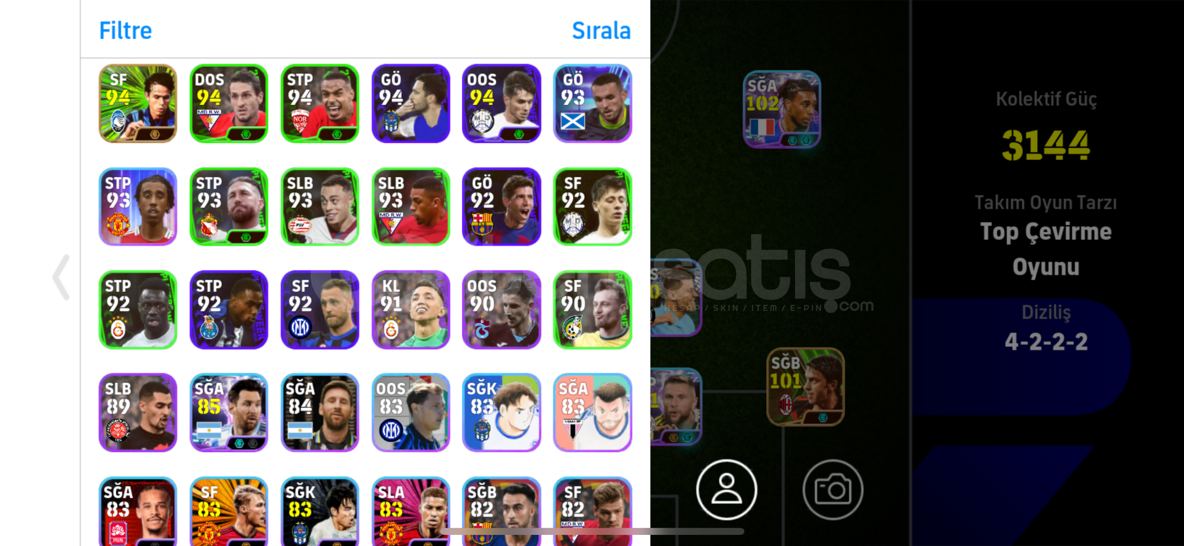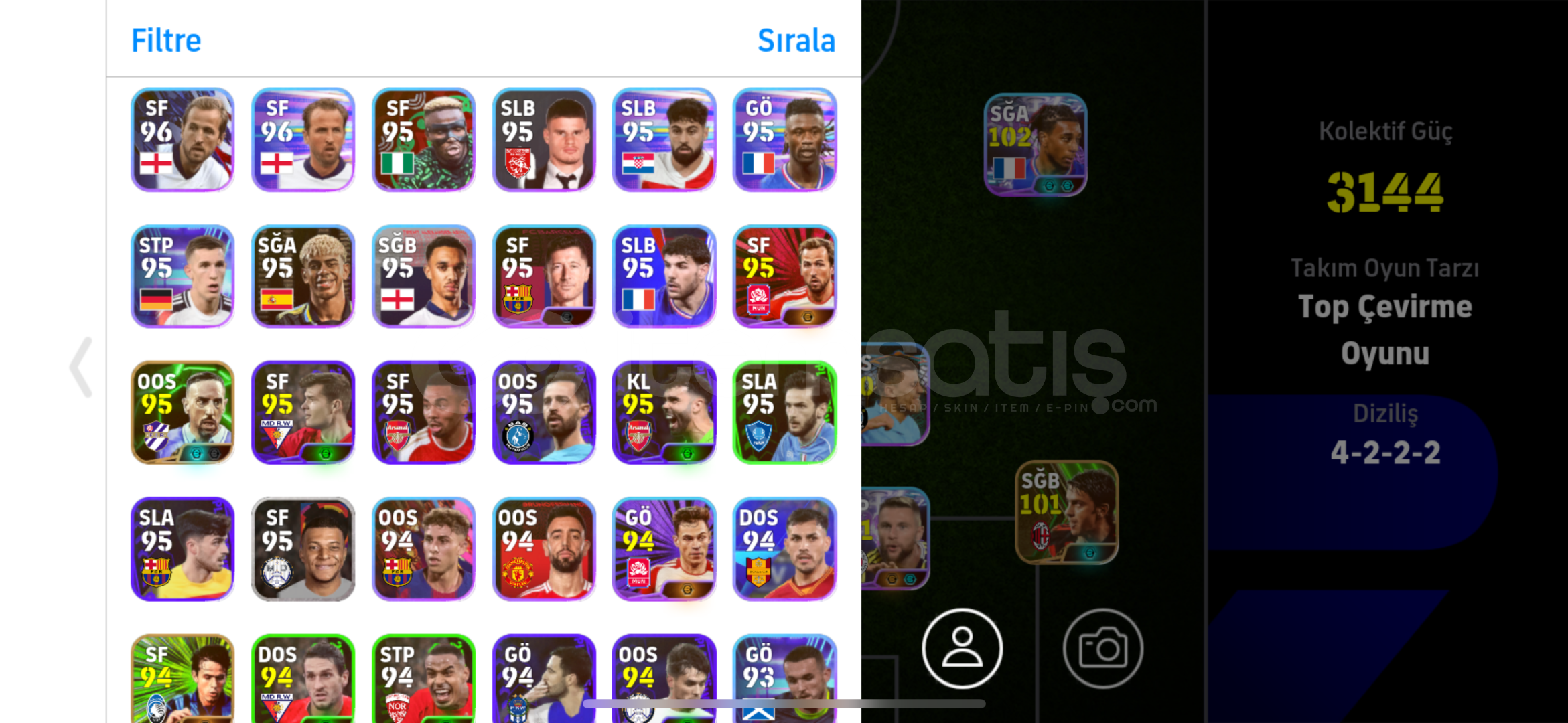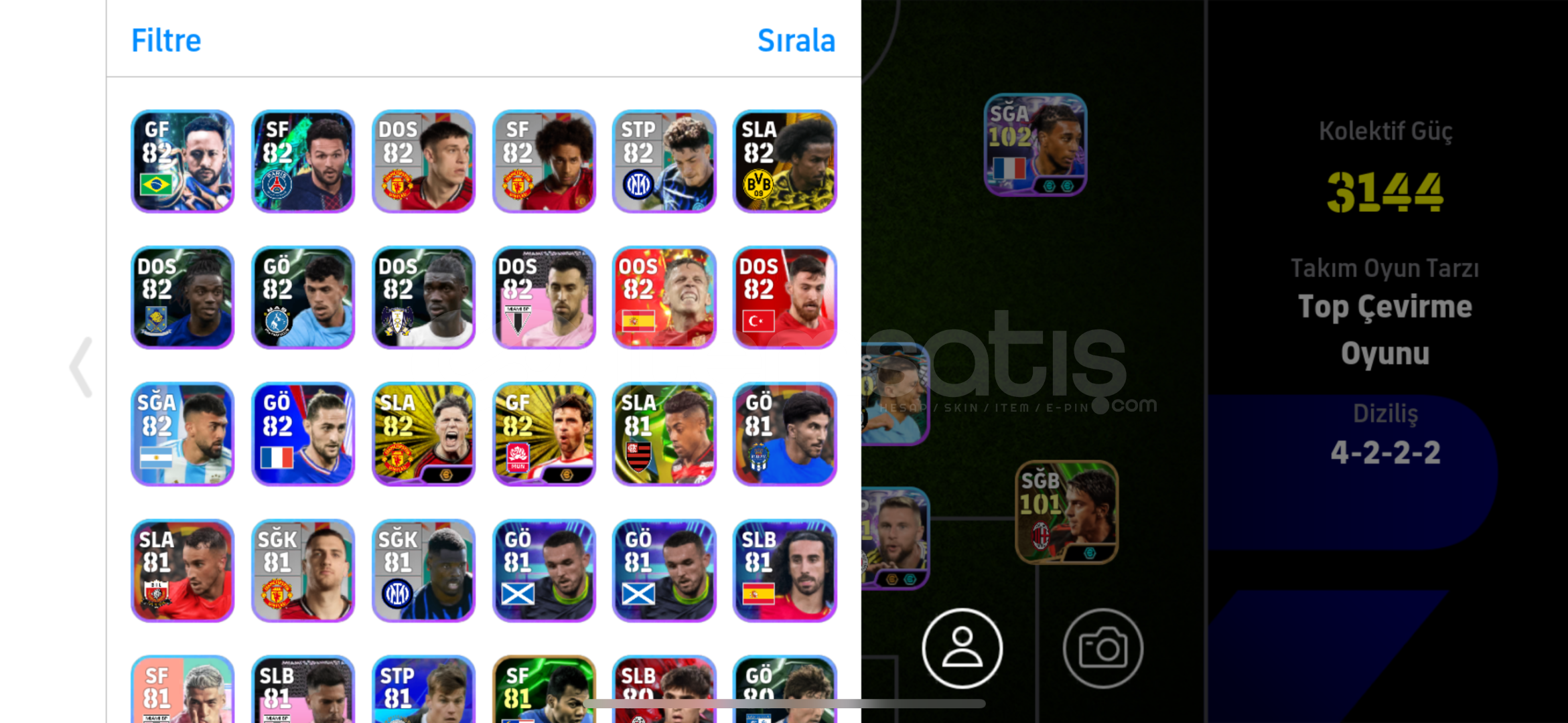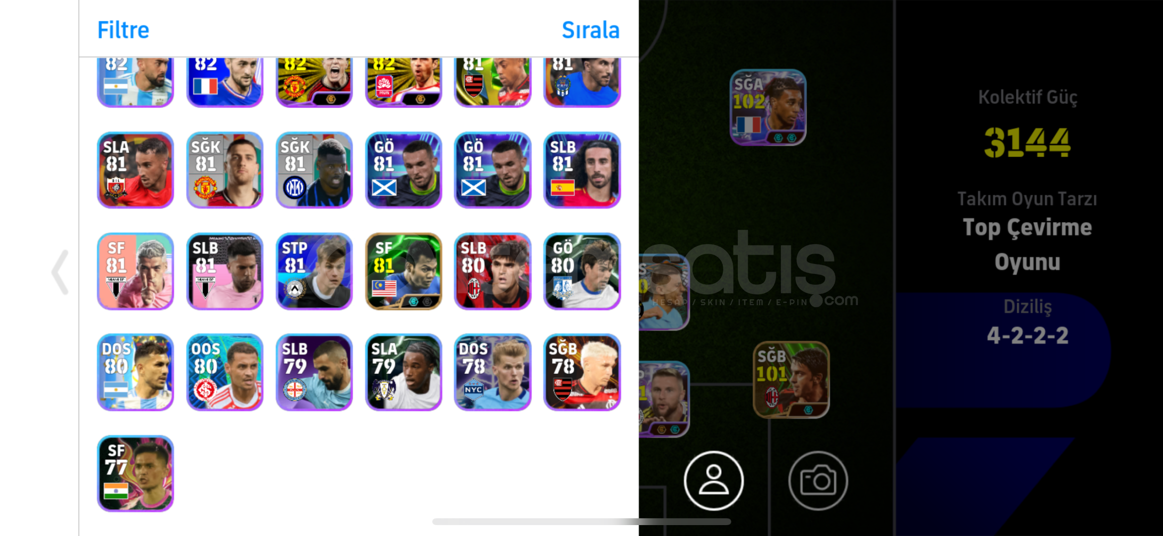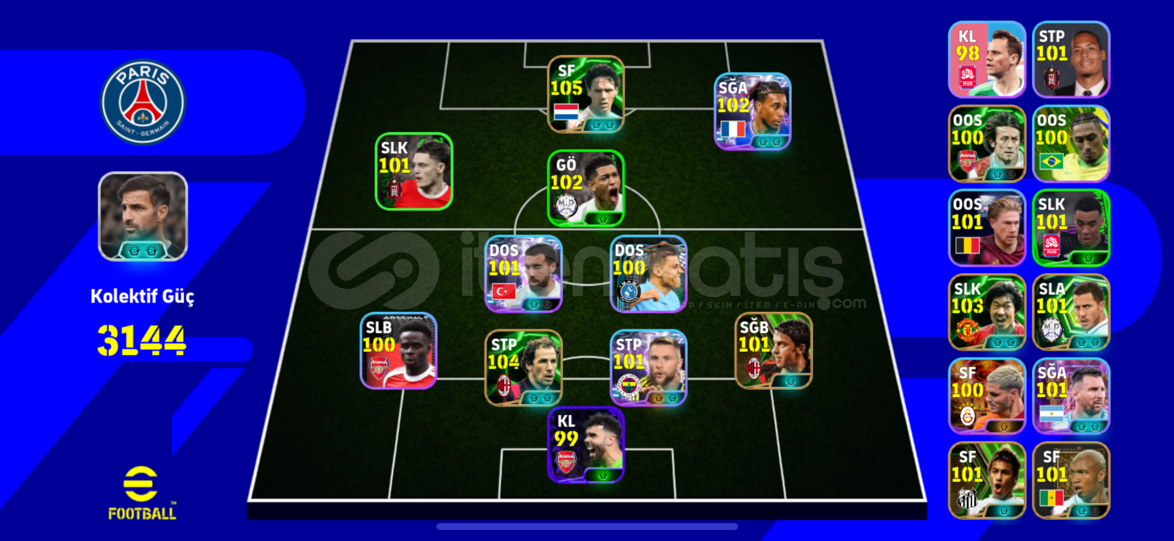 🔥 3144 kolektif güce sahip eFootball hesabıdır.👥 Kadrosu doludur, yüksek overall oyuncular bulunmaktadır....