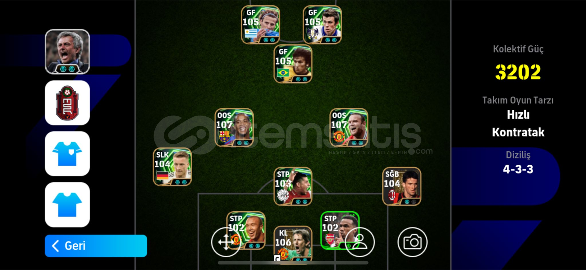 4 menejerli 3202 kollektif güç emek hesabı 2 adet bombacı Kale 107 oluyor güçlendirici ile 108 ilk OOS Ronaldinho ve Wayne Roney 107 lik kale Edwin wan der sar 05059787870