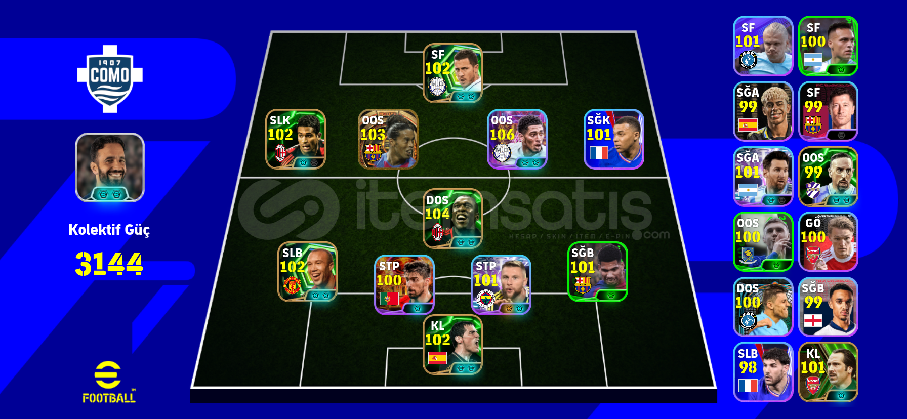3140 kadro gücü 106 Bellingham104 Seedorf102 Casillas101 Skrinar103 Ronaldinhotek bağdır ve eksi mc yoktur