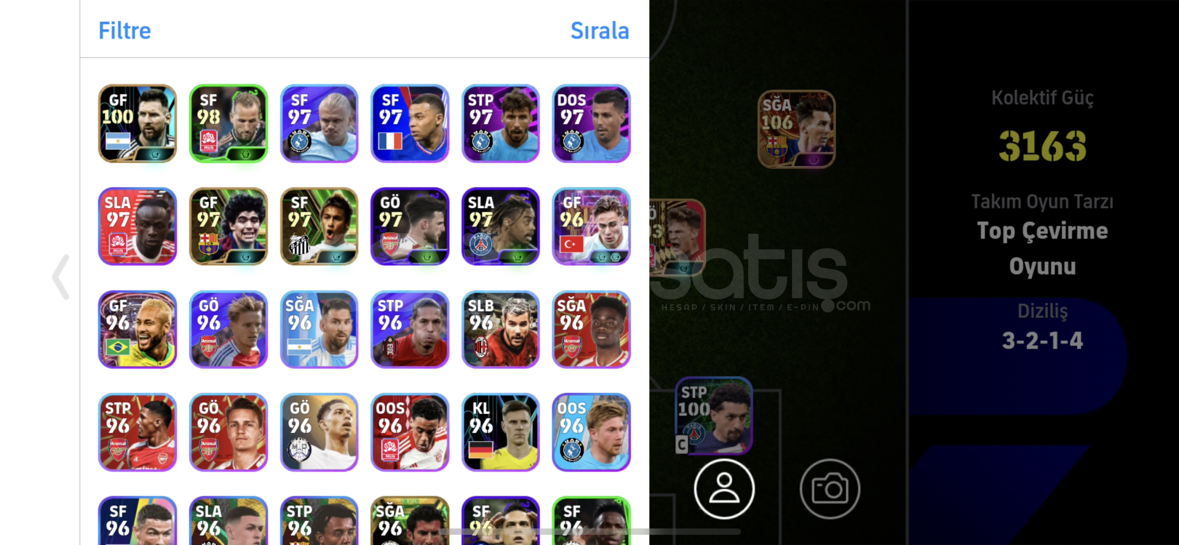🟩 HESAP ÖZELLİKLERİ⭐ 11.000.000 GP (Aşırı yüksek – nadir bulunur)⭐ Çok geniş Epic / Highlight kart havuzu⭐ Güncel meta oyuncular: Messi, Mbappé, Haaland, Neymar, Dybala, Saka, De Bruyne ve daha fazlası⭐ Yüksek OVR kadro (100–105 arası birçok oyuncu)⭐ Kolektif Güç: 3163⭐ Güçlü yedekler ve dolu kulübe⭐ Kartlar&#...