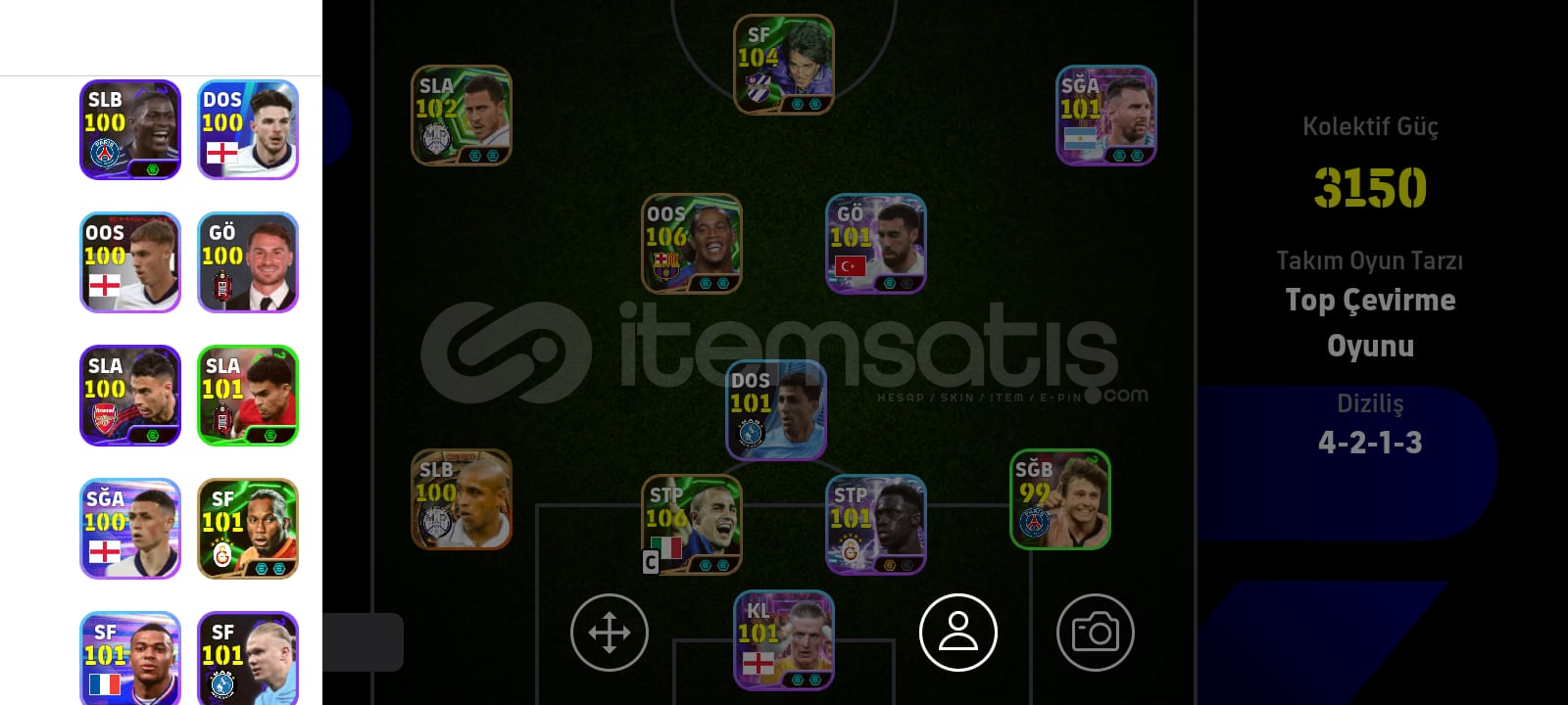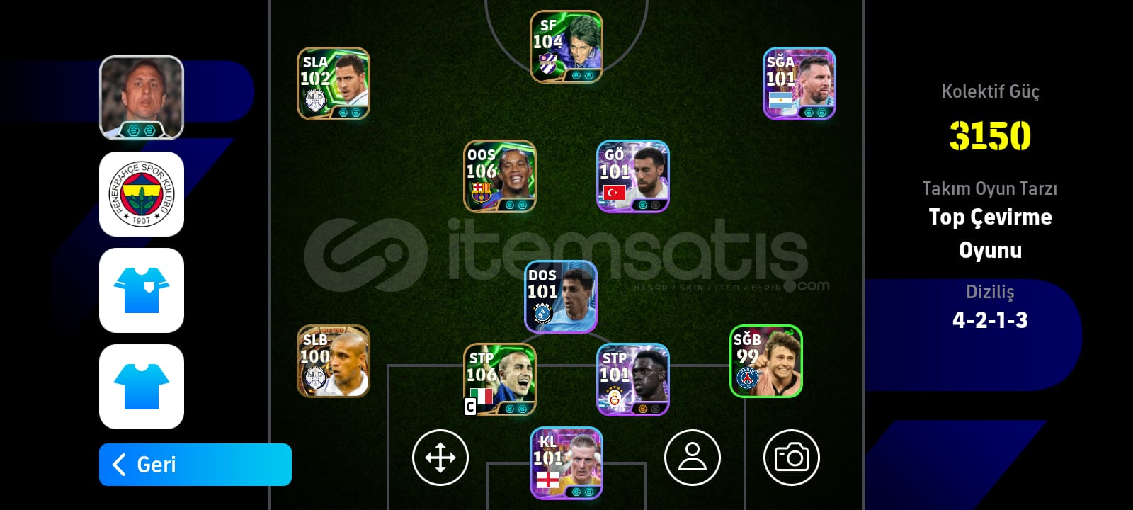 3150KG Mükemmel Hesapİlk 11- 106 Ronaldinho- 106 Cannavaro- 105 Batistuta- 102 Eden Hazard- 102 Orkun Kökçü- 101 Davinson Sanchez- 101 Lionel Messi- 101 Rodri- 101 Pickford- 100 Roberto Carlos- 99 Joao NeverMenajerler ve Yedek Oyuncular Hakkındaki Bilgileri Ekran Resimlerinden Öğrenebilirsiniz.√ Kimlik Onaylı Satıcı√ Hızlı Teslimat√ 10/10 Müşteri Memnuniyeti√ 25+ Başarılı İ...