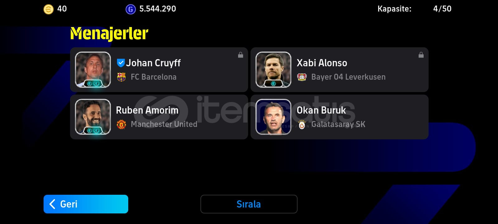 Menajerler ve Yedek Oyuncular Hakkındaki Bilgileri Ekran Resimlerinden Öğrenebilirsiniz.