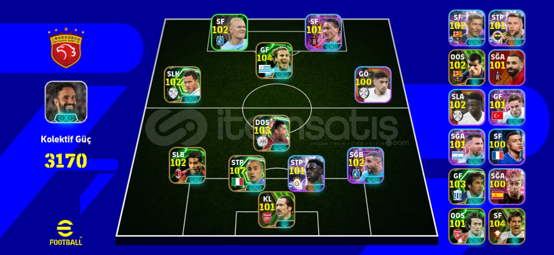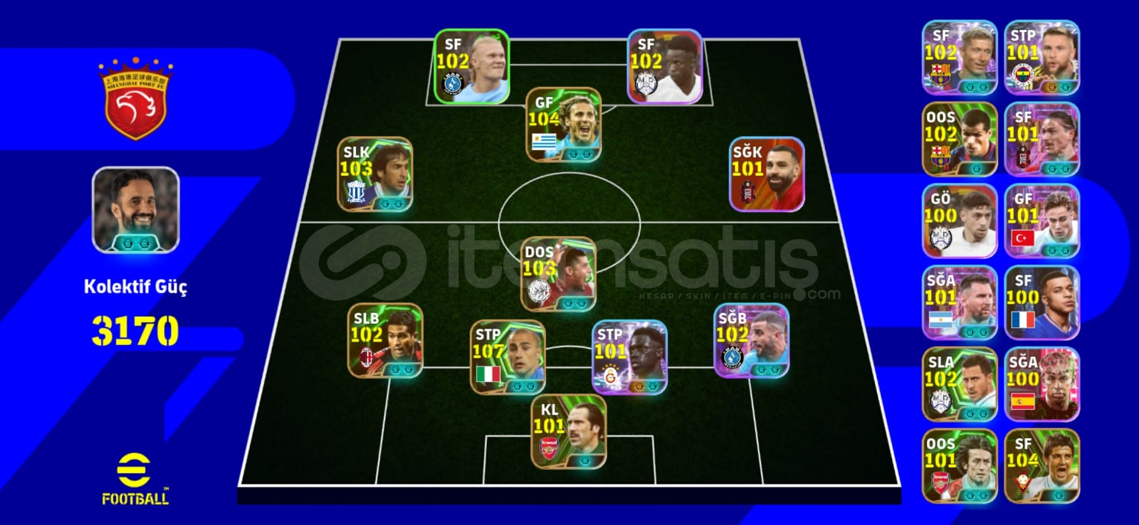 HESAP İÇERİSİNDE107 CANNAVARO104 DAVİD VİLLA104 FORLAN101 SKRİNİAR191 DAVİNSON S.101 SEAMAN102 RİVALDOVE DAHA BİRÇOK OYUNCU BULUNMAKTADIRALANA HAYIRLI OLSUN