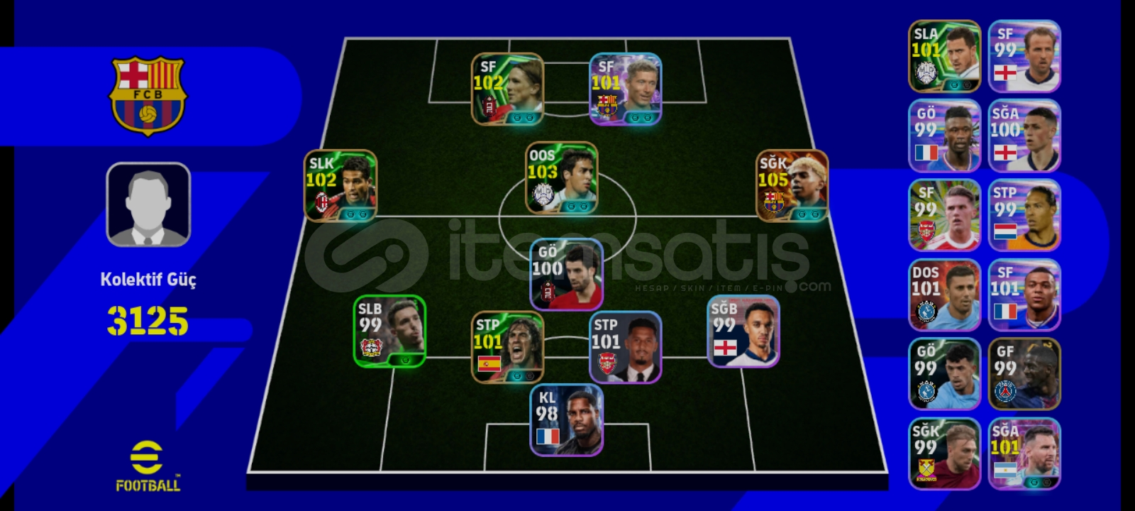 Efotball mobile satlık hesap 3125 kg tek bağ