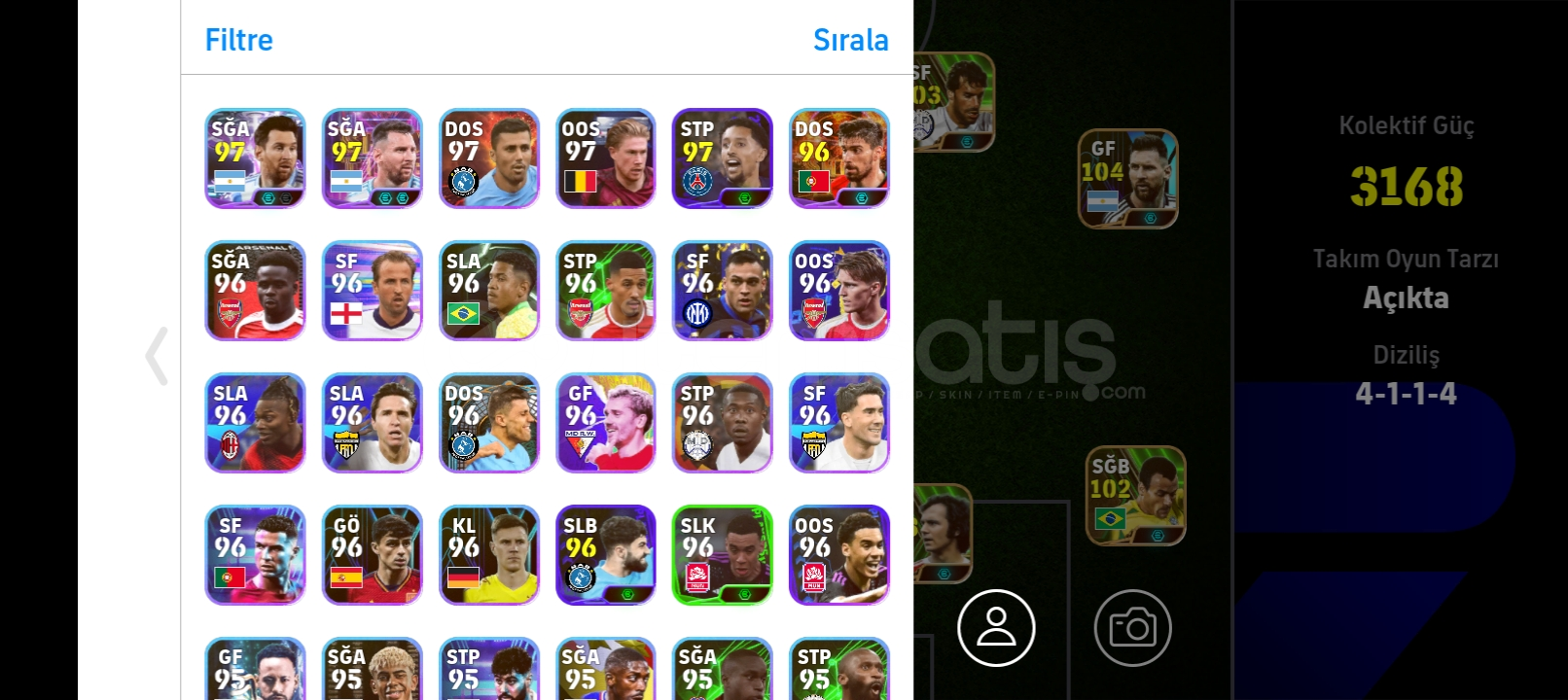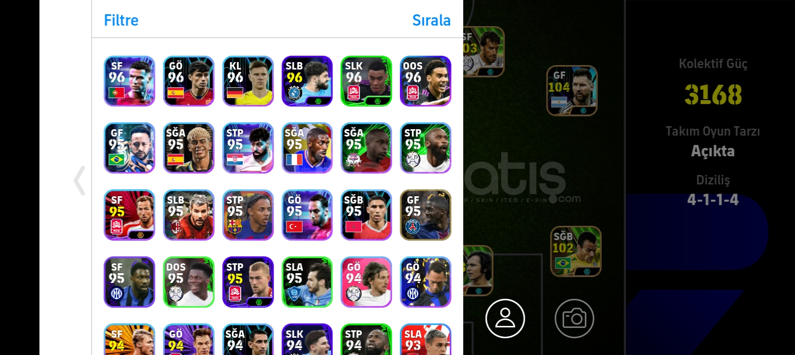 Harika hesaptır Messi ve griezmann paketi alınmıştır 103 shevchenko 103 nuno Mendes gibi çok iyi oyuncular ve nadir kartlar vardır tek bağdır max 3170 kg dir almadan önce yazınız :)