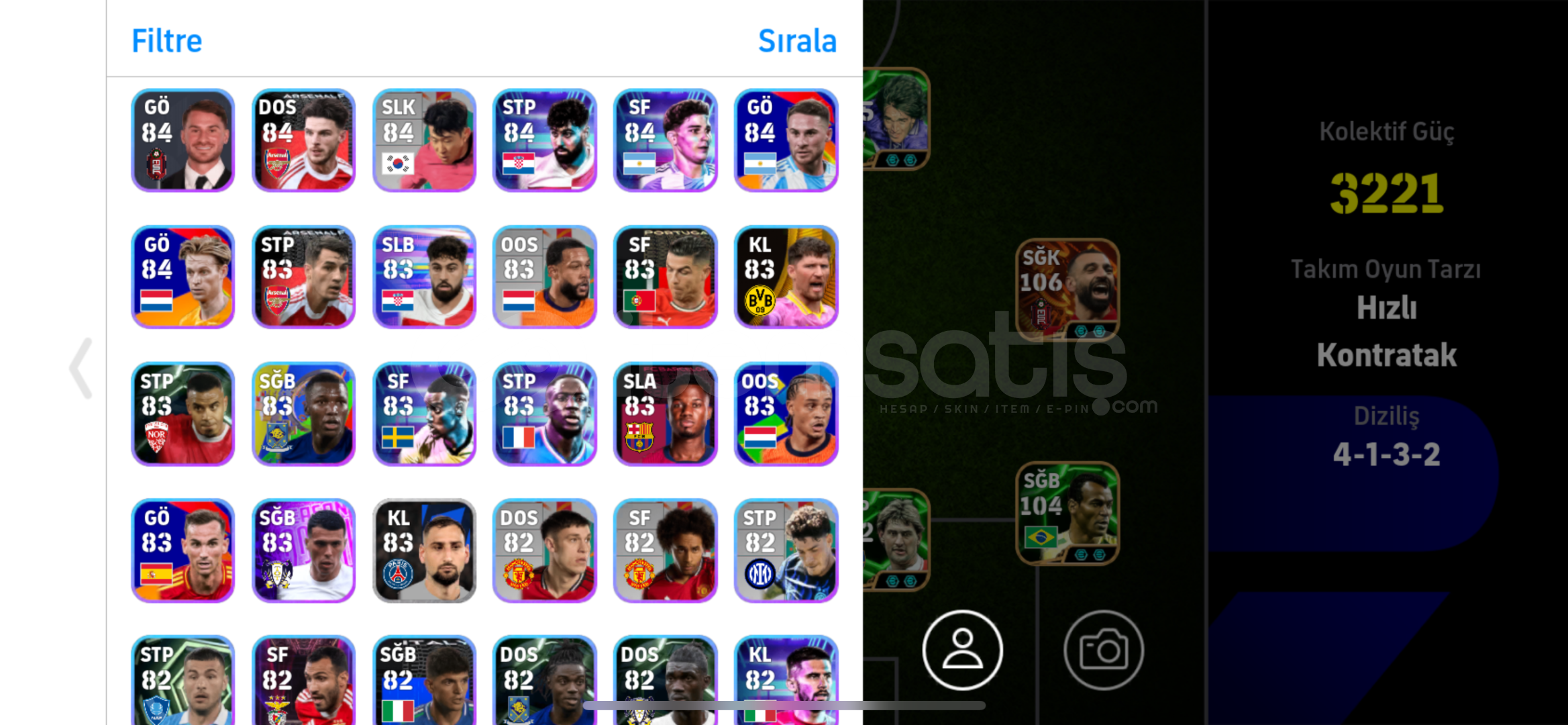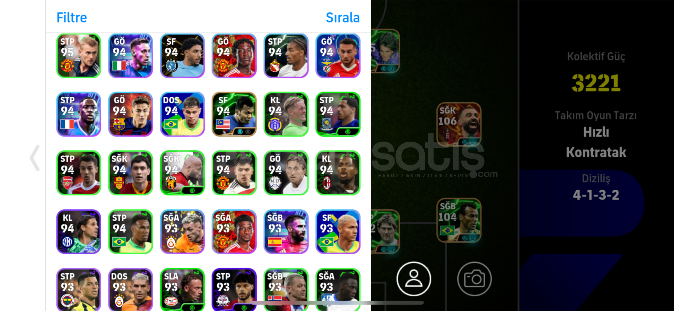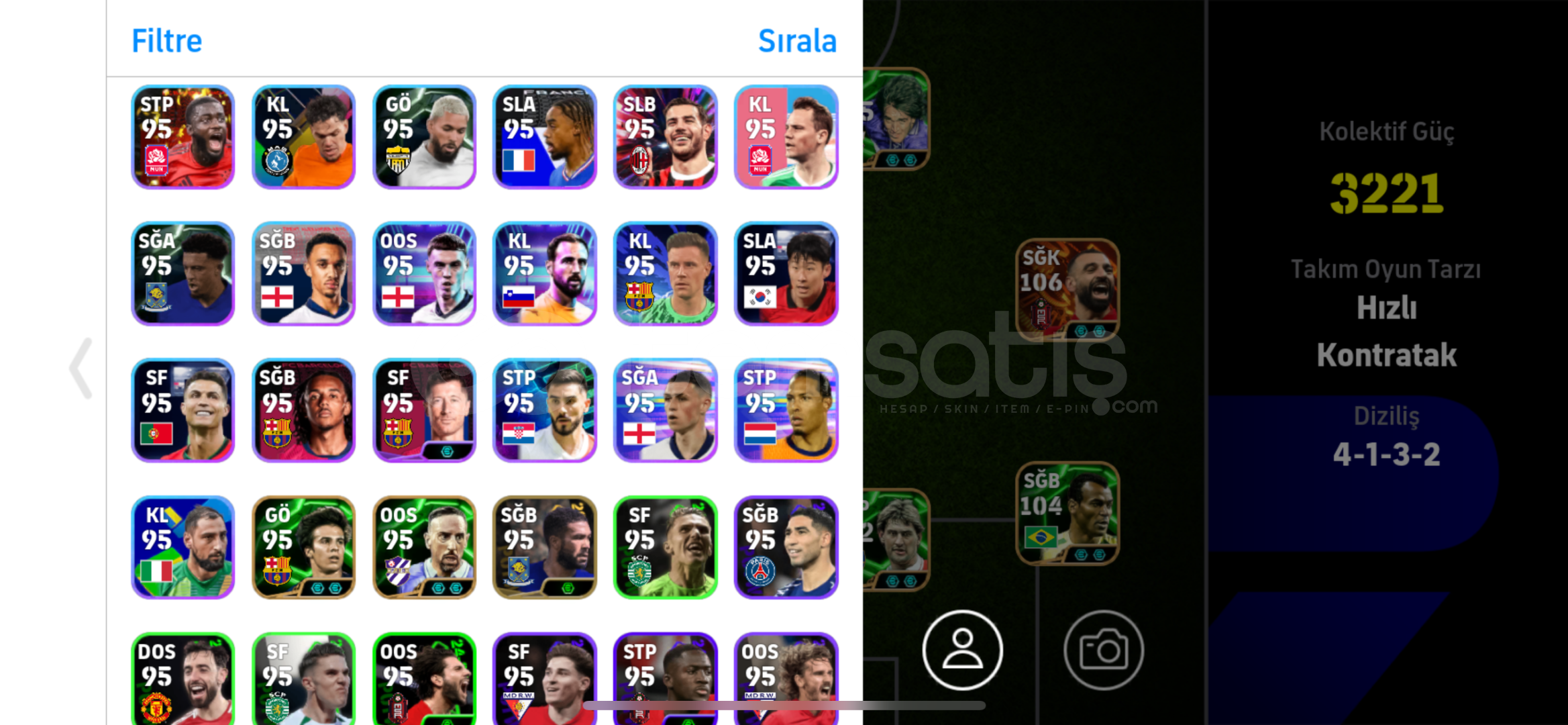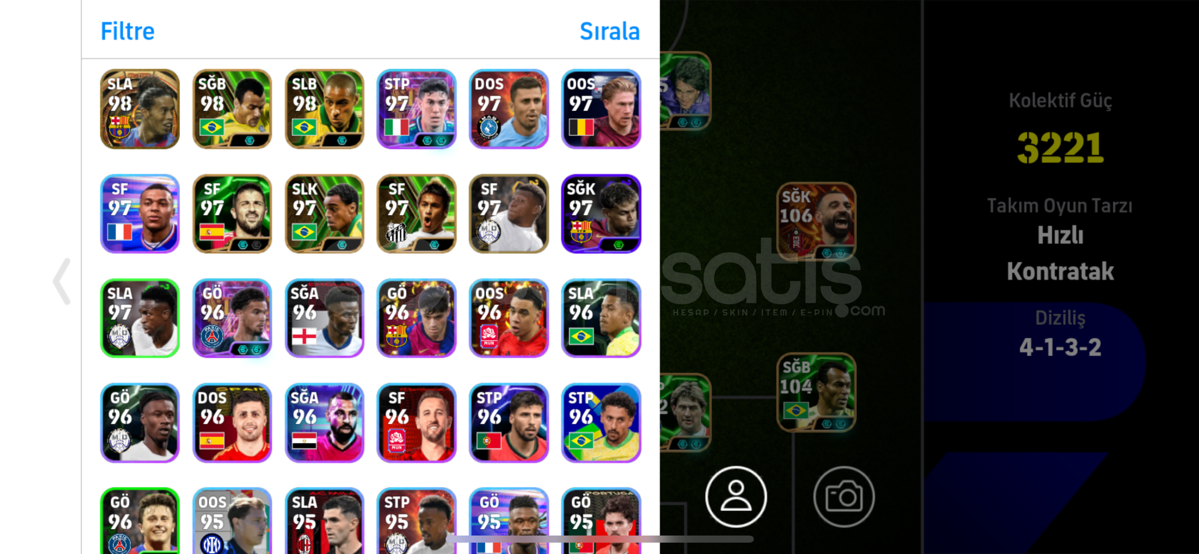 Bu hesapla eFootball'da zirveye oyna!Oyuncuların hepsi en iyi şekilde özel basım kullanılarak oluşturulmuştur.Hesap...