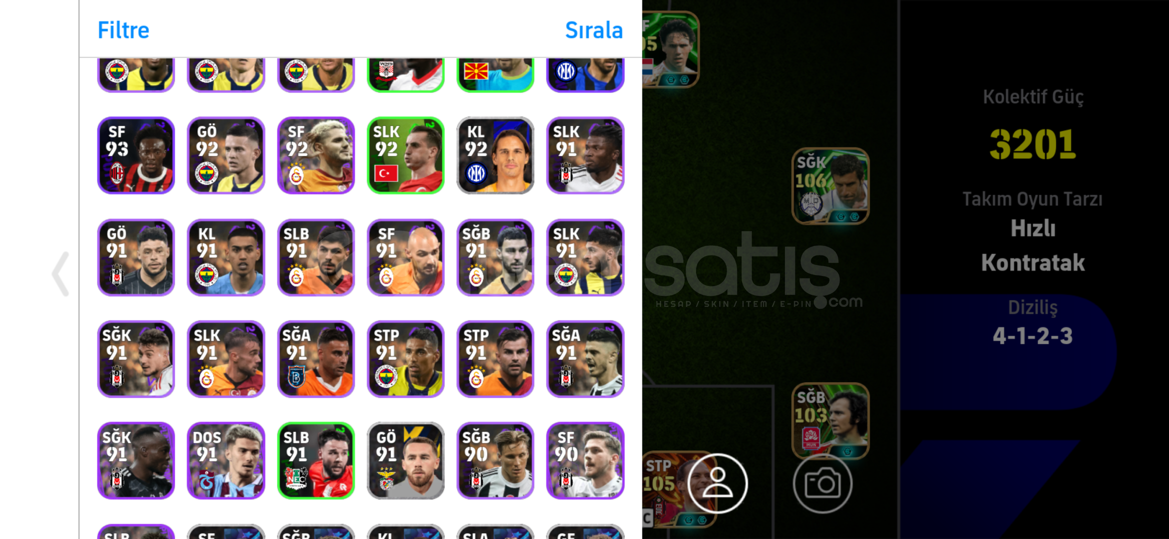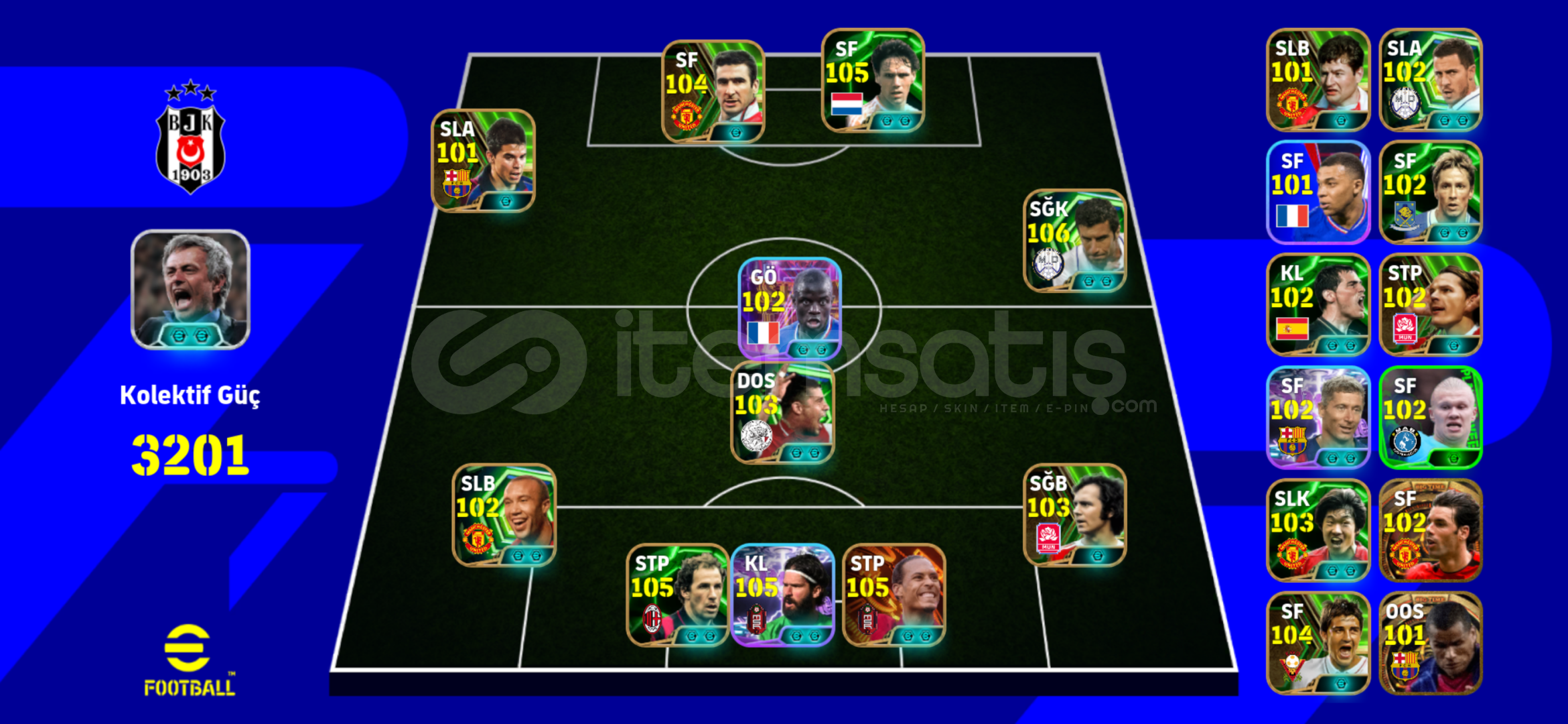 Hesap efsane bol td li içinde 104 cantona 105 basten 105 alisson gibi oyuncular vardır -mc vardır sorunsuz alabilirsiniz tek bağ