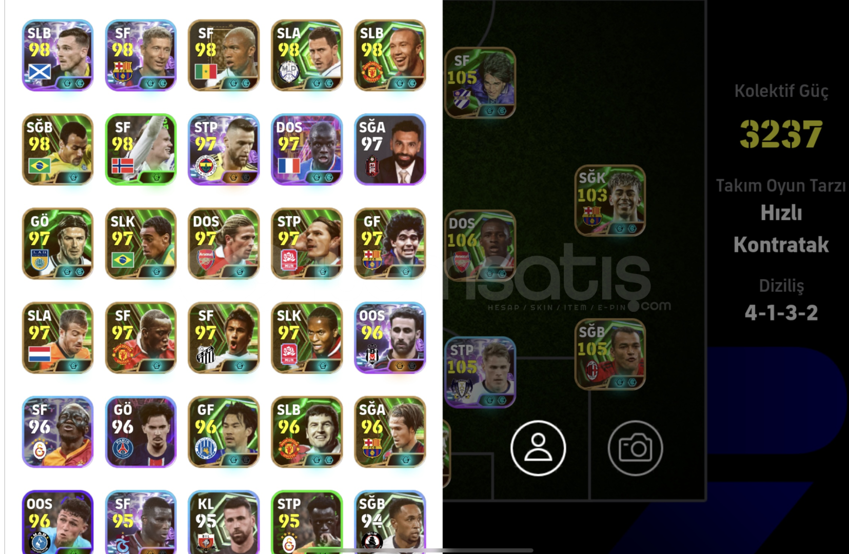 Yüksək Güclü Futbol Hesabı ⚽️🔥🔹 Toplam Güc: 3237🔹 Formasiya: 4-1-3-2🔹 Oyun Stili: Sürətli Kontrataklar🔹 Əsas Oyuncular:STP 107 | STP 105 | KL 105 | GO 103SF 109 | STP 105 | SGK 103 və daha çox!🔹 Yedeklər: Yüksək keyfiyyətli və güclü yedek futbolçular ilə dolu!Bu hesab, ən yüksək səviyyədə inkişaf et...