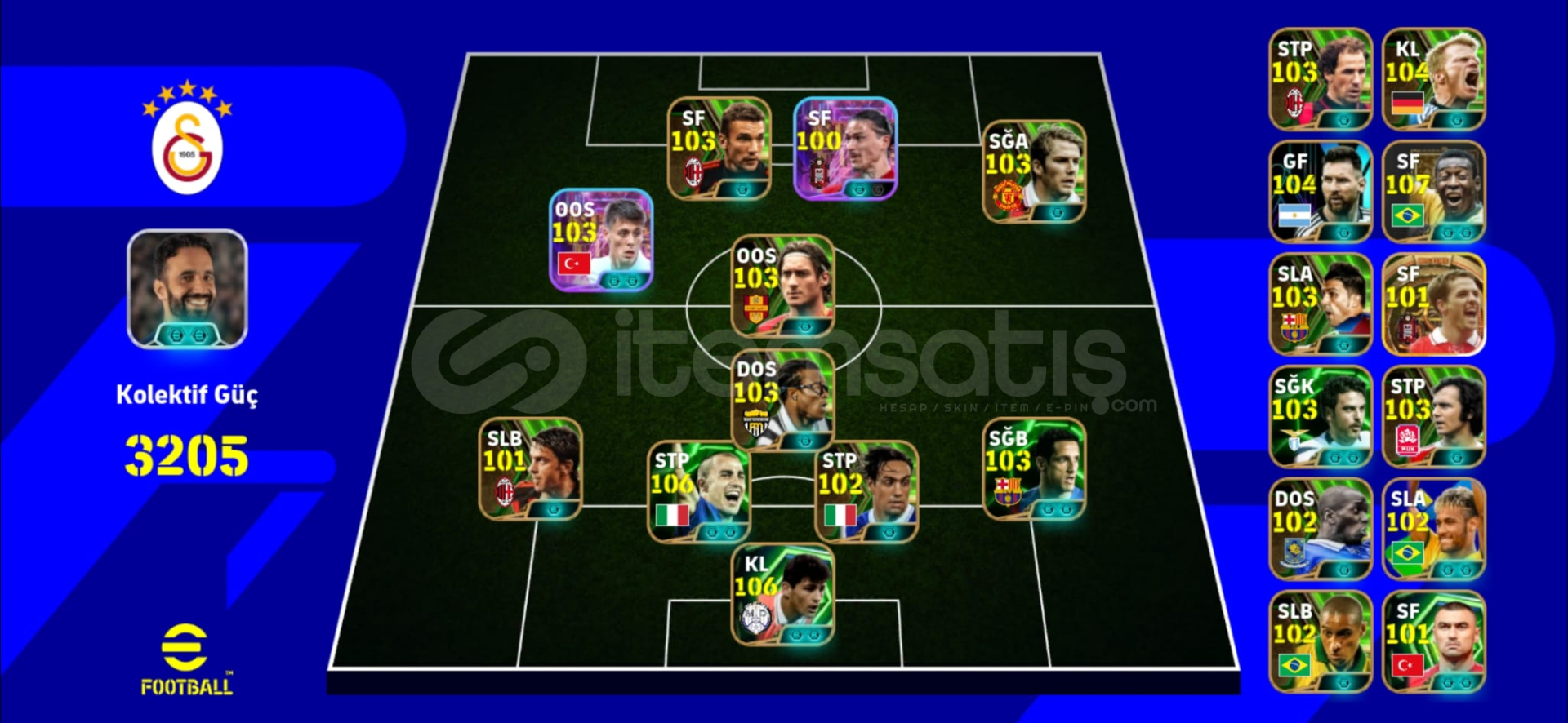 101 Bigtime Owen103 Schevchenko108 Pele103 Beckham103 Totti 103 Arda Güler102 Nesta102 Makalele106 Casillas 103 David Villa103 Fiori104 Oliver Kahn