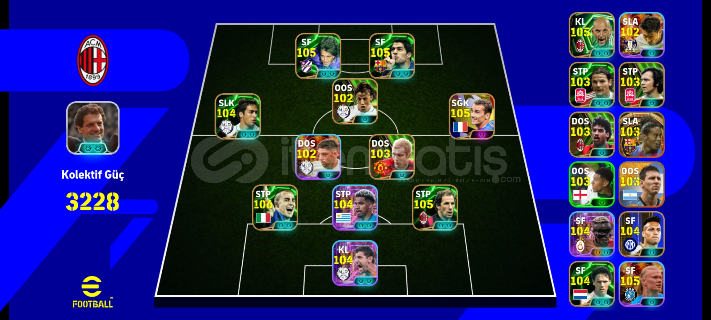 Tam full halini koymadım ama mükemmel hesaptır.(Tahmini 3235)Defalarca klasmanda 1'e yükselmiştir.Capello-İnzaghi-Amorim menajerleri mevcuttur,tek bağdır.Rezerv oldukça geniştirEksi MC yoktur,300-400 civarı MC vardır