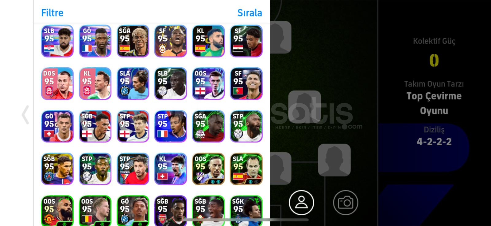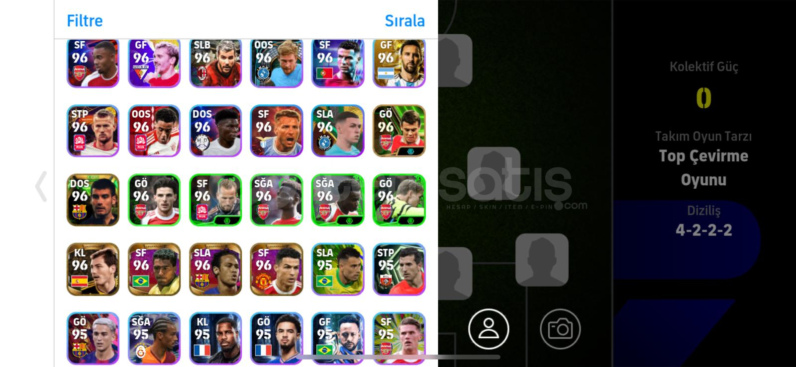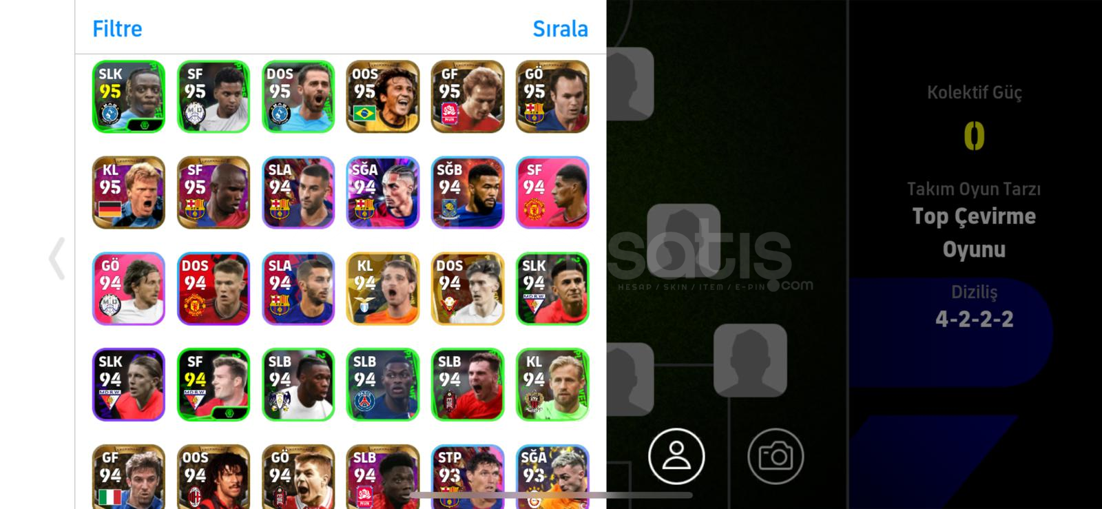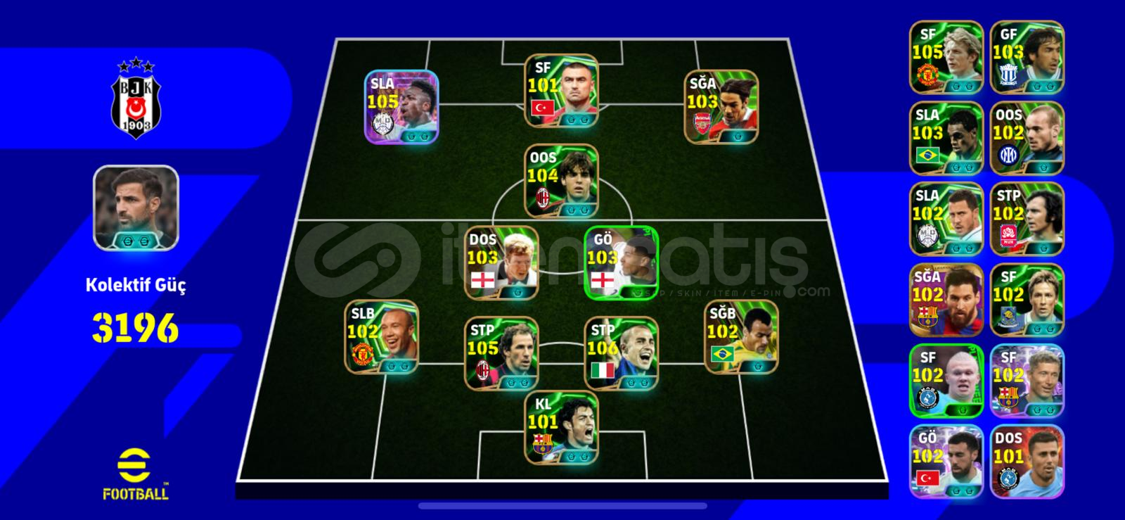 175+ Oyunculu nadirlik bir hesaptır.Bombacı Burak YılmazOyuna artık gelmeyecek olan eski legendlar mevcut hesapta106 Cannavaro / 105 Baresi / 105 Law /105 Vinicius / 104 Kaka / 103 ScholesFiyata göre gerçekten iyi hesaptır . Hesabı satın alan arkadaş zaten bi kaç maç yaptıktan sonra gayet keyif alacaktır.