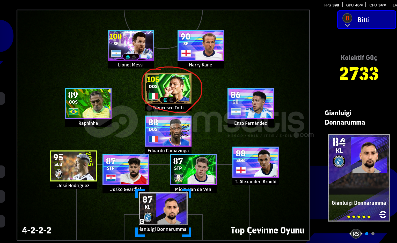 İçinde francesco totti bulunmakda güçlendirme basarsanız 106 olur şuan 105.