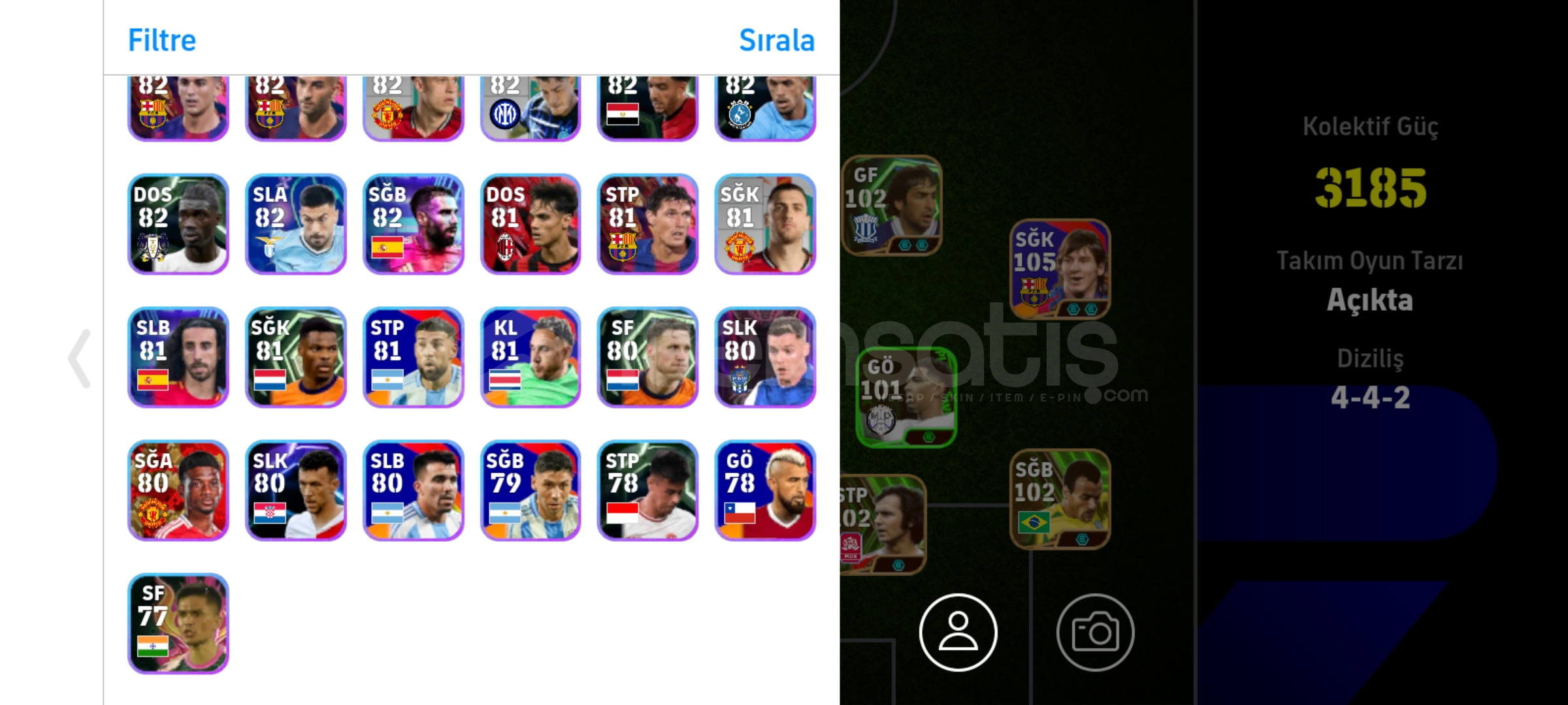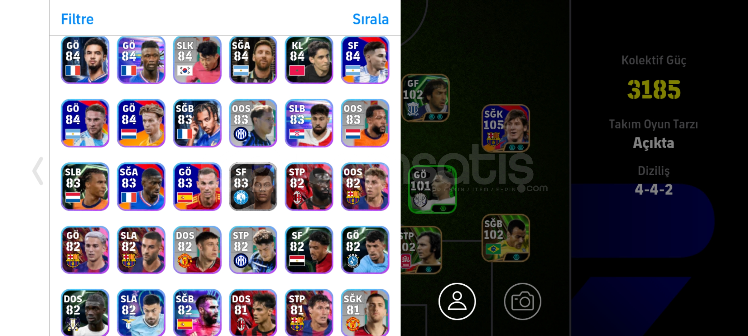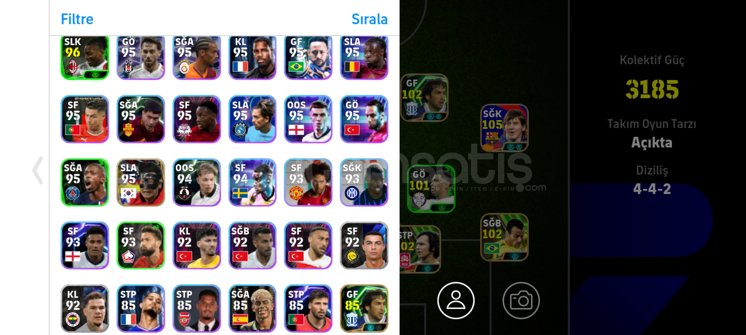 Bombacı 104 Uli Hoeneß - 106 Donarumma - 102 Sroickhov gibi bir sürü epik ve show timeEn az 750TL