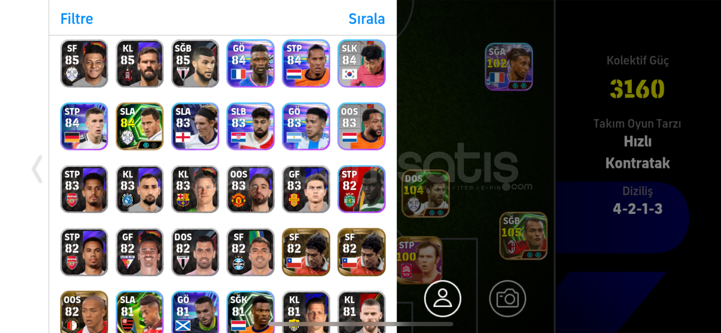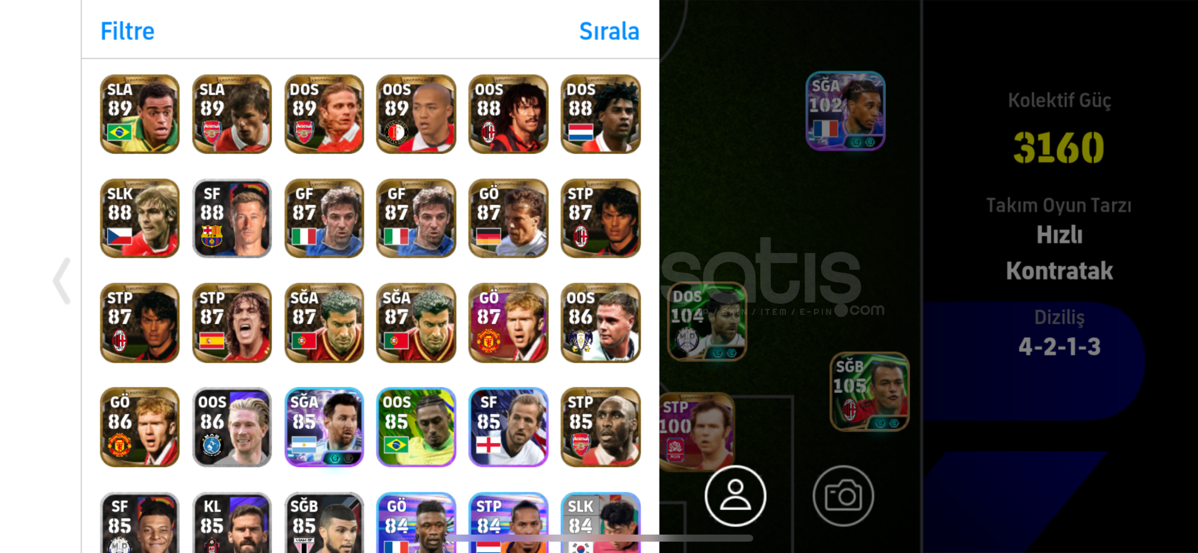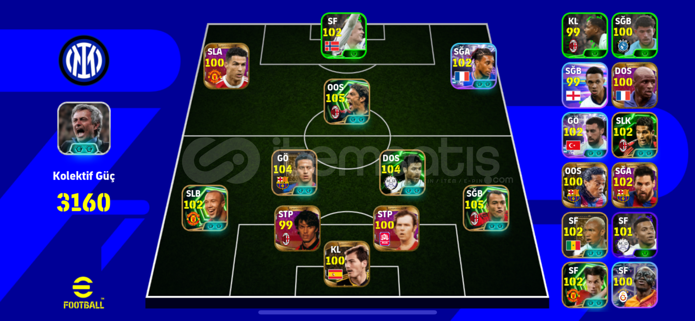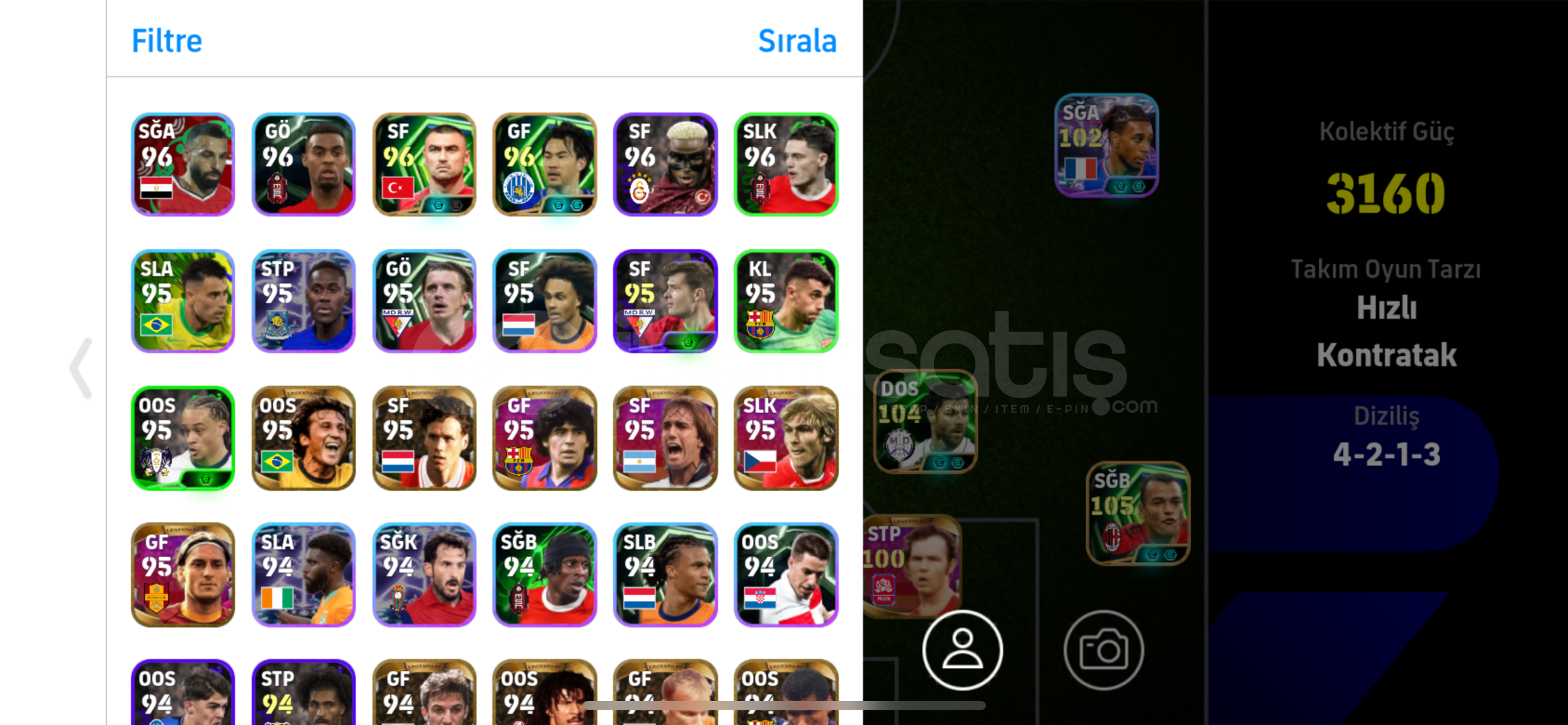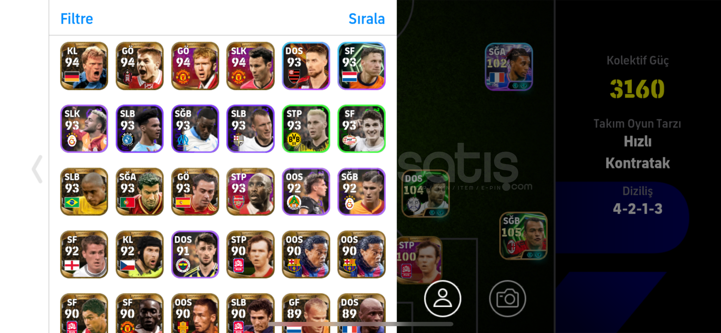 Hesapta 2019’dan bu yana kalma efsane oyuncular bulunuyor. Güncel thiago rui costa cafu gibi epik kartlar bulunuyor.