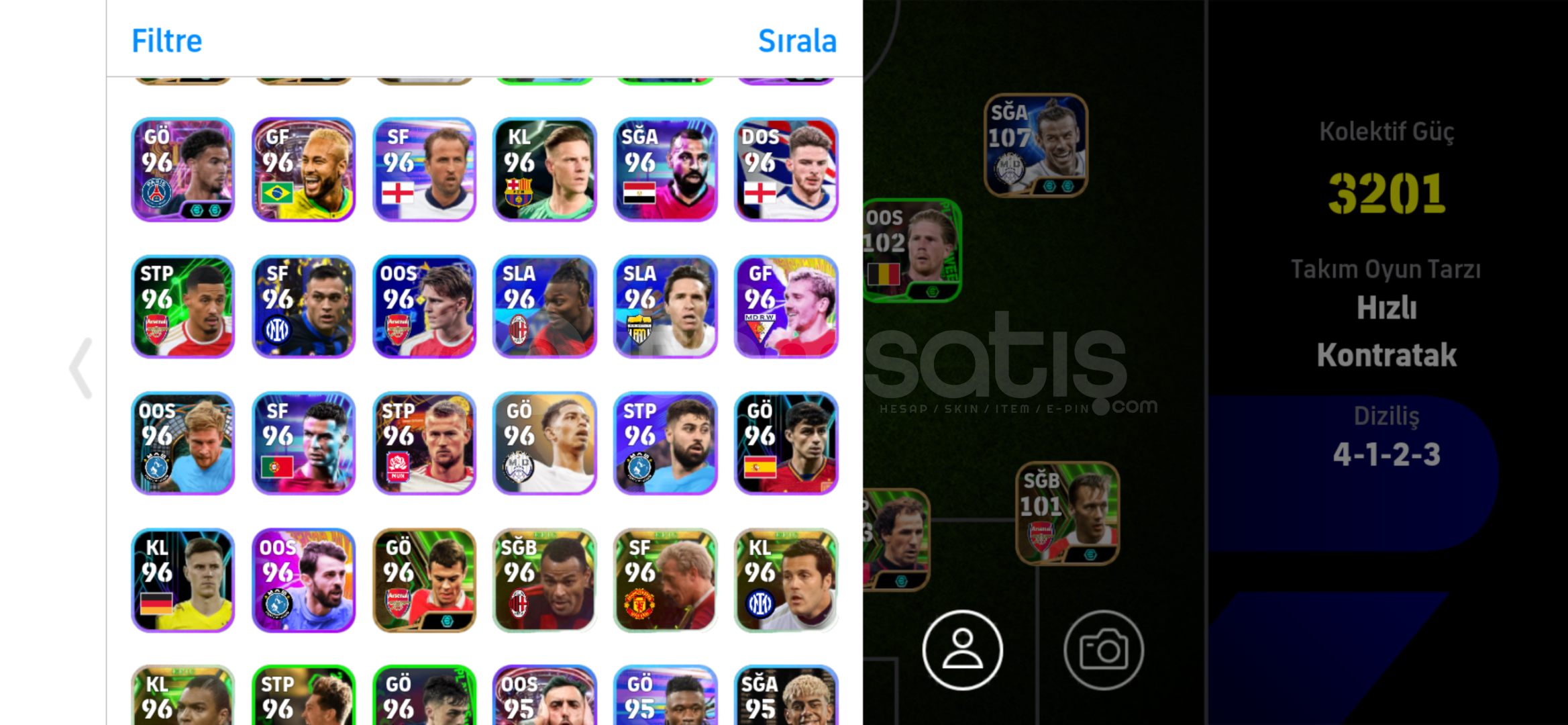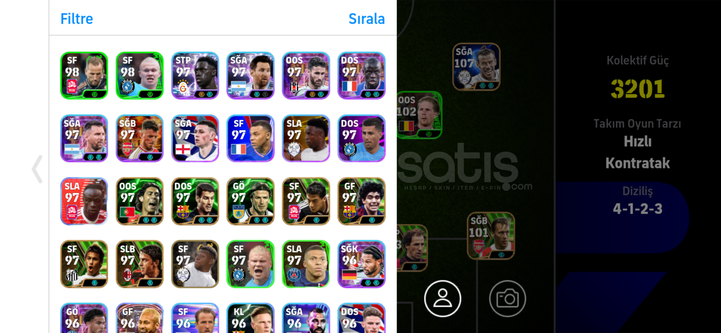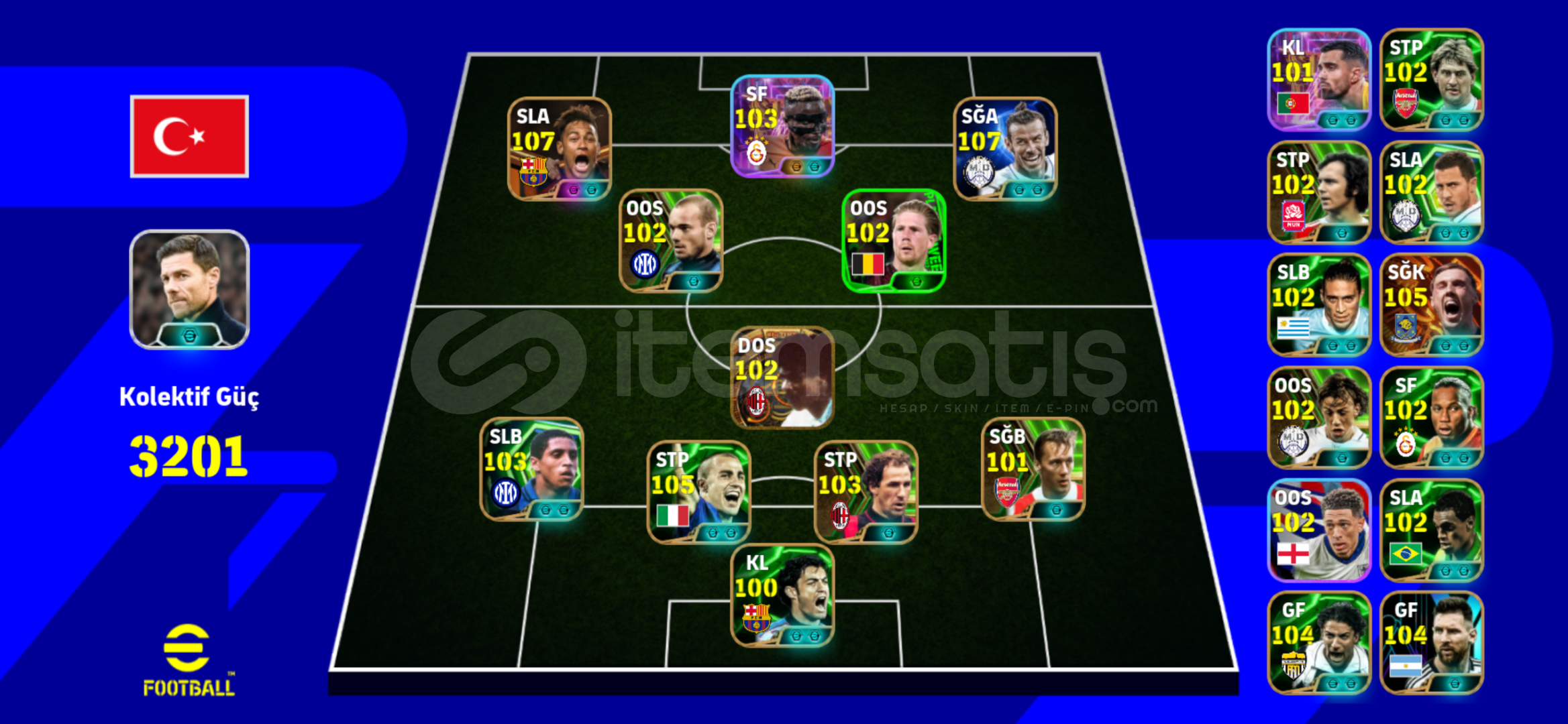 Tek bağ 106 oshimen 107 neymar 107 bale 103 genç carlos 106 cannavaro süper lig kadrosu sağlam bir hesap ilan fotosunu koydum aklınıza takılan birşey olursa yazabilirsiniz