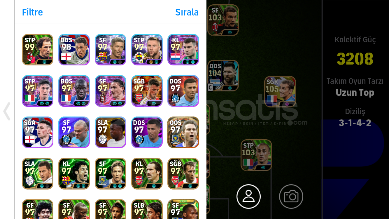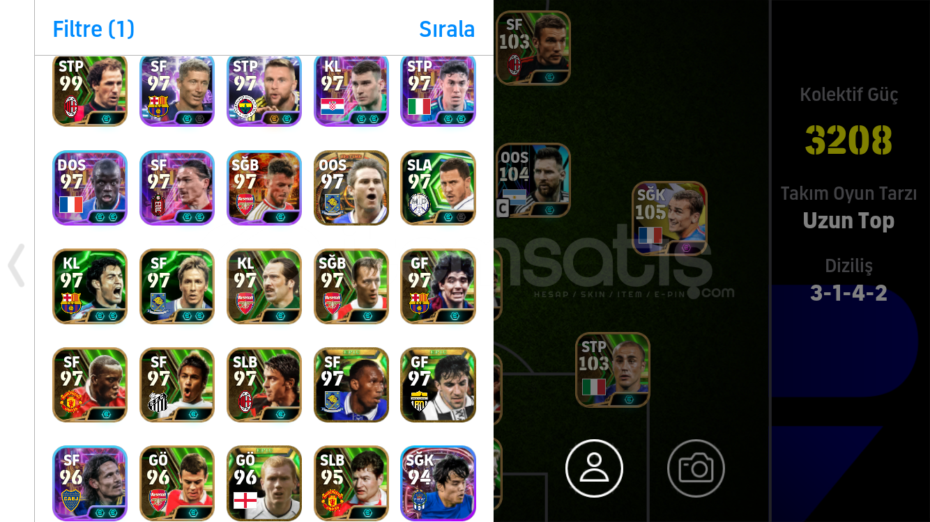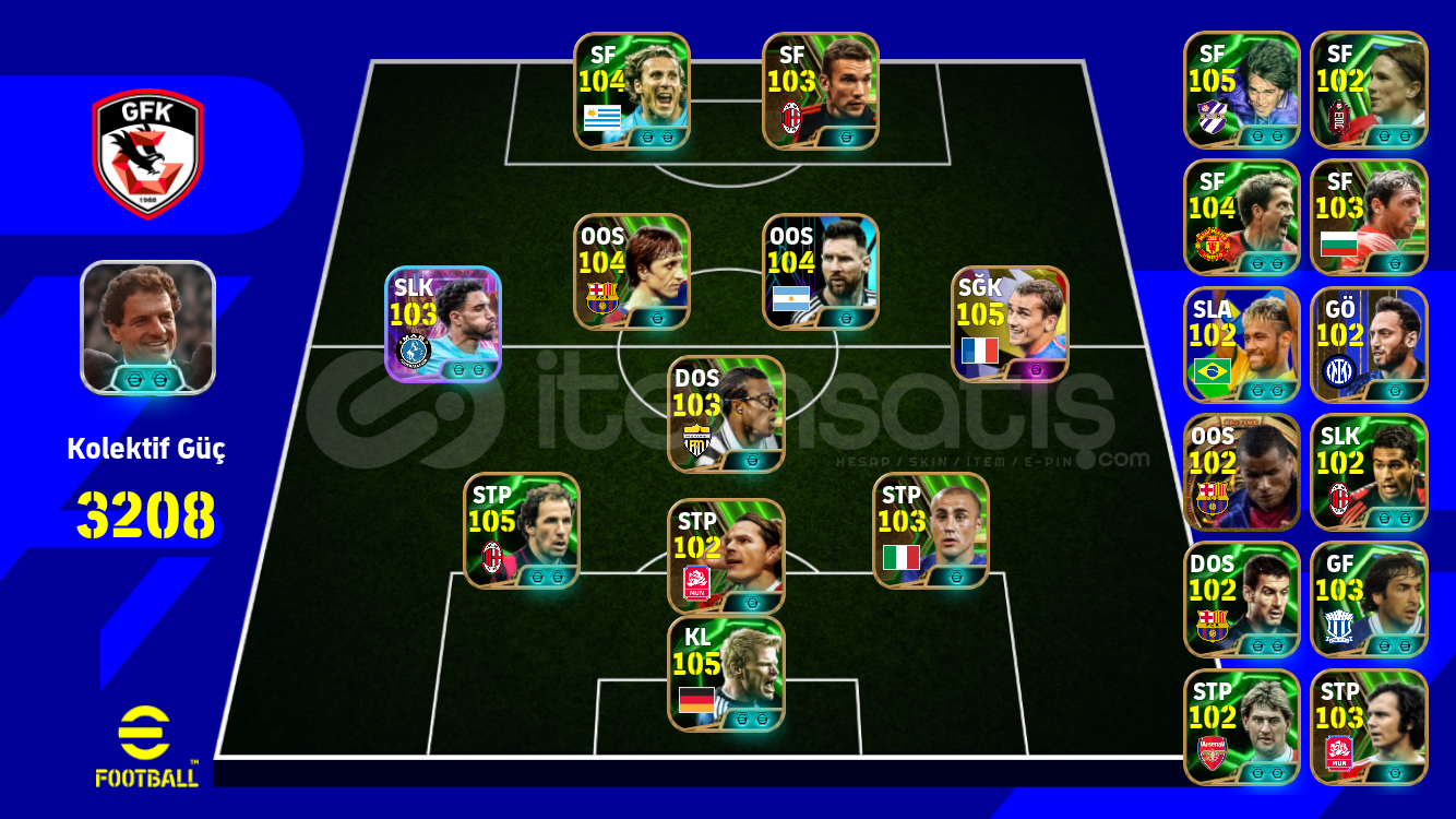 106 Khan105 Griezman,Baresi,Batistuta104 Cruyff,Forlan,Messi,Owen103 Shevcenko,Marmush,Davids,cannavaroRaul,Beckenbauer,Stickov,Neymar102 Rivaldo,VanBuyten,Hakan,Skriniar7 Özel Td 2 menajer bağlantılı3 Kez 1. Klasmana çıkıldı50 adet epic,show time,big time3210KGeksi mc yok,Tek bağ ios,androidRezerv ağzına kadar dolu bir Sağlam takım daha çıkaralana hayırlı olsun