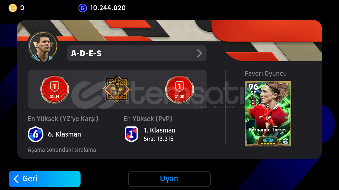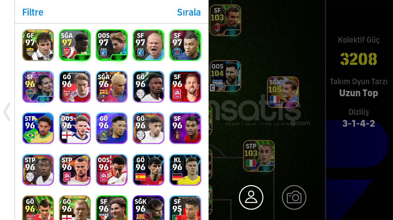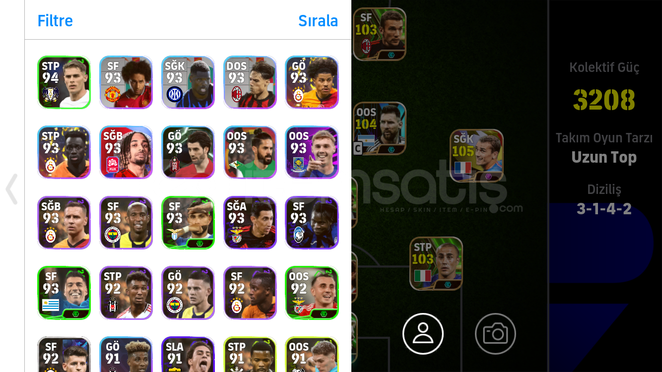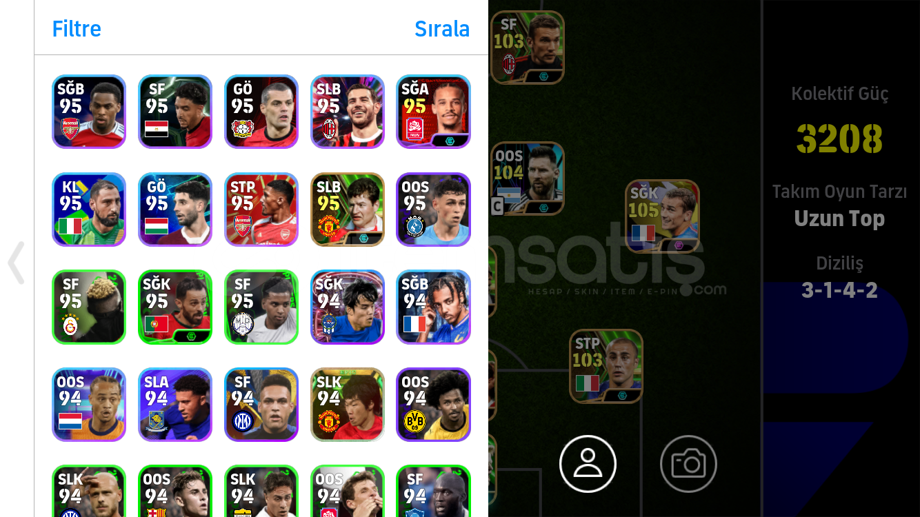 106 Khan105 Griezman,Baresi,Batistuta104 Cruyff,Forlan,Messi,Owen103 Shevcenko,Marmush,Davids,cannavaroRaul,Beckenbauer,Stickov,Neymar102 Rivaldo,VanBuyten,Hakan,Skriniar7 Özel Td 2 menajer bağlantılı3 Kez 1. Klasmana çıkıldı50 adet epic,show time,big time3210KGeksi mc yok,Tek bağ ios,androidRezerv ağzına kadar dolu bir Sağlam takım daha çıkaralana hayırlı olsun