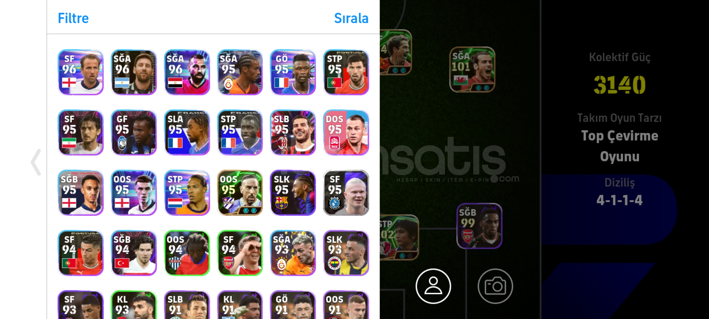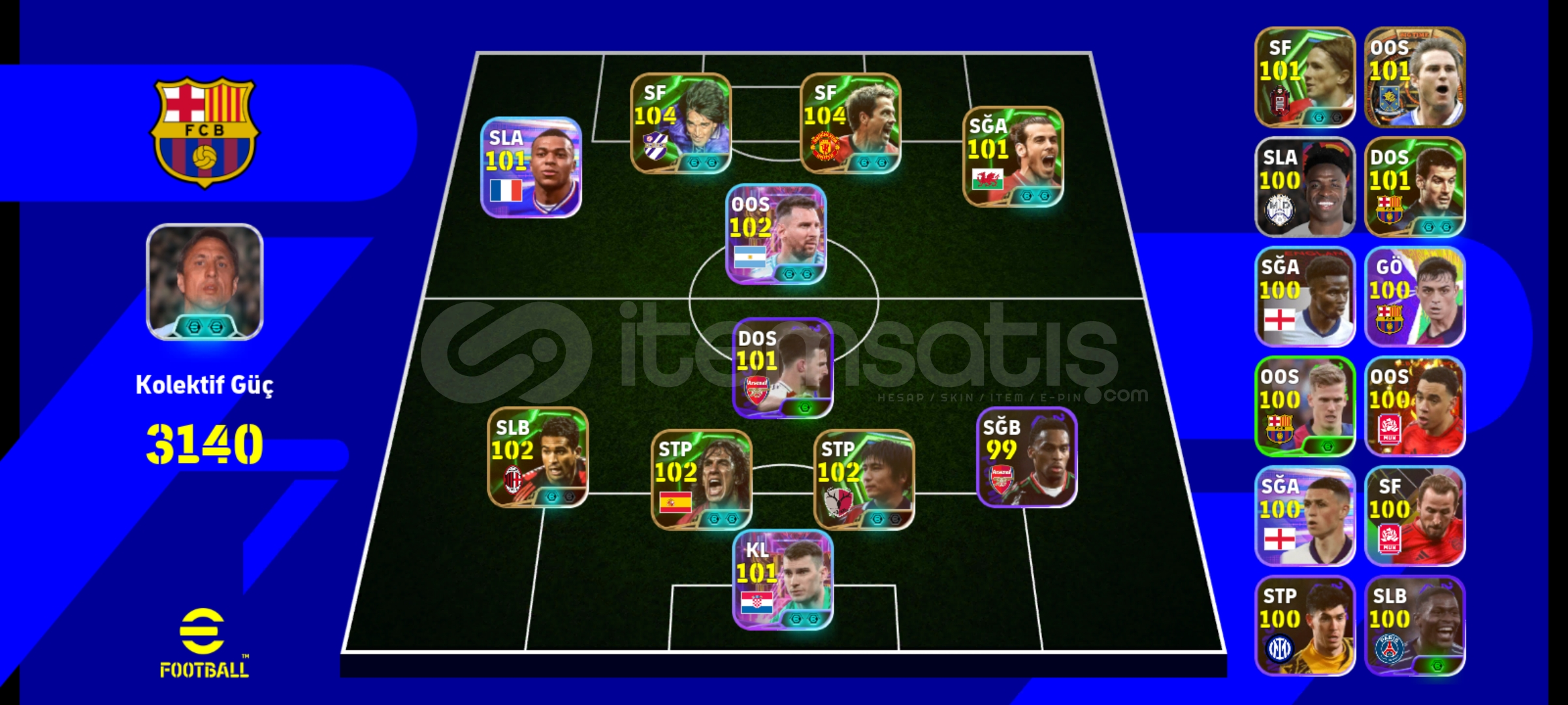 Hesap fotoğraflarda göründüğü gibidir tek bağdır alıcısına hayırlı uğurlu olsun deriz. İçinde 104 batistuta,bale,owen,102 ilk japon epik stoper vs vardır.